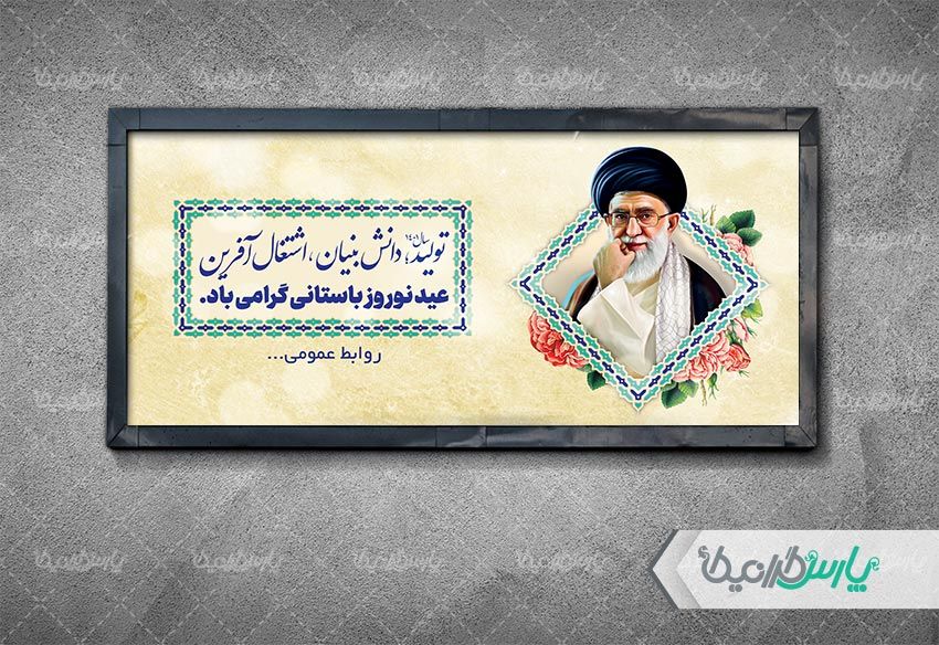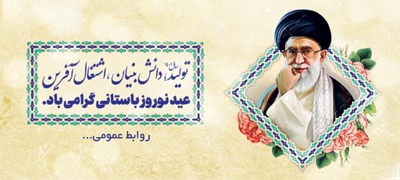 - طراحی بنر با استفاده از تصویر ایت الله خامنه ای در طرح بنر شعار سال