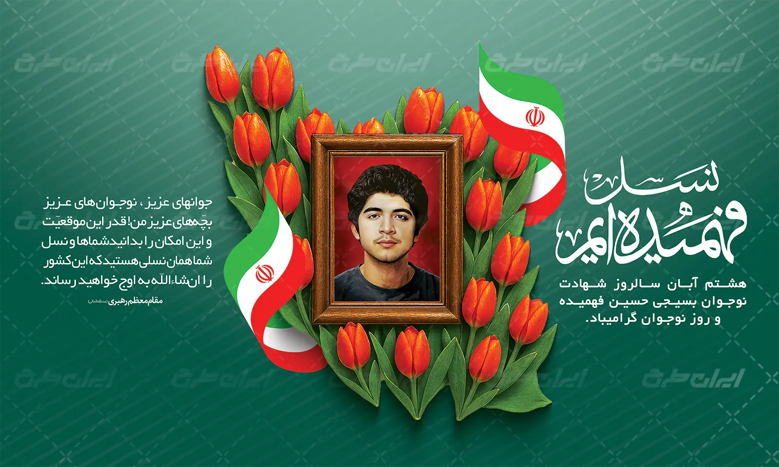 تصویر شهید حسین فهمیده و متن گرامیداشت روز بسیج دانش آموزی می باشد که توسط تیم ایران طرح طراحی شده است.
