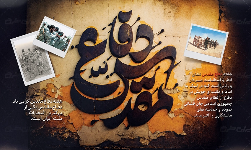 بنر لایه باز هفته دفاع مقدس، توسط تیم حرفه ای ایران طرح جهت استفاده کاربران سایت طراحی و به صورت لایه باز در دسترس کاربران قرار گرفته است.