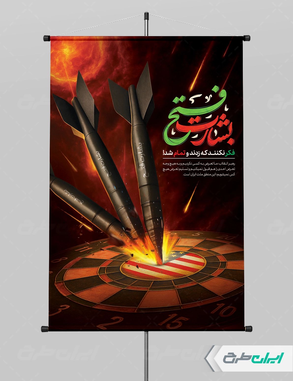 تایپوگرافی بشارت فتح و متن مرتبط با این حمله موشکی است که توسط تیم خلاق ایران طرح طراحی شده است.