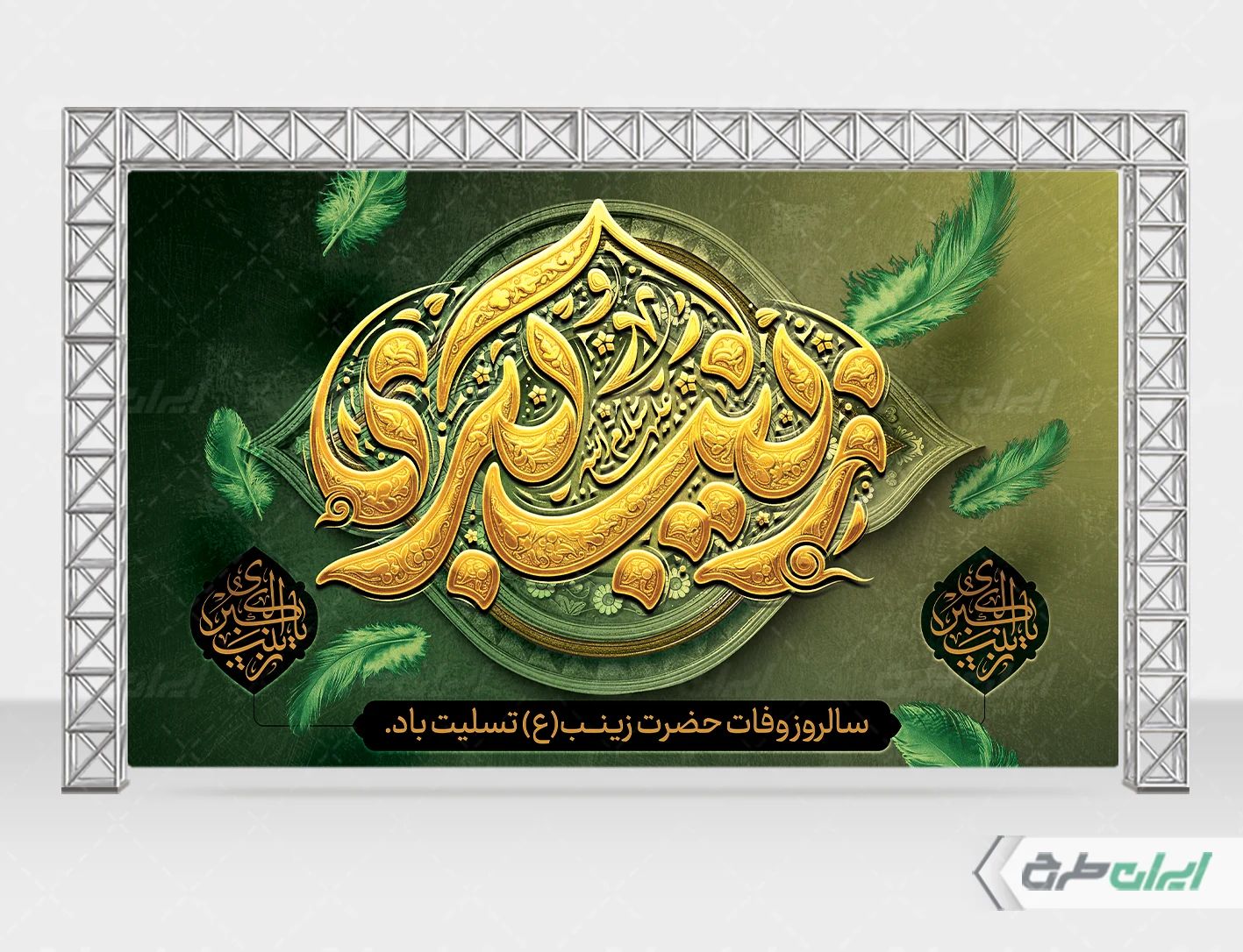 بنر وفات حضرت زینب (س)، توسط تیم حرفه ای ایران طرح جهت استفاده کاربران سایت طراحی و به صورت لایه باز در دسترس کاربران قرار گرفته است.