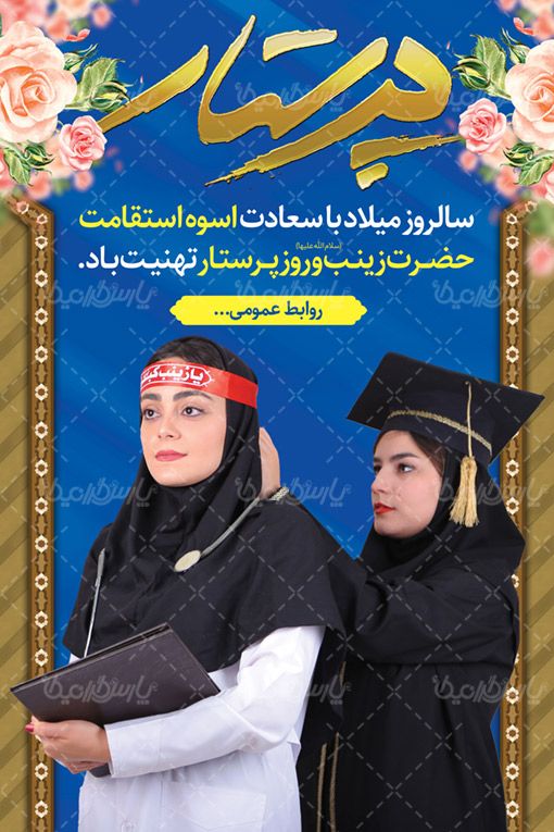 طرح بنر روز پرستار ، بنر روز پرستار و ولادت حضرت زینب(س)، بنر لایه باز روز پرستار ، بنر مناسبتی، بنر لایه باز ولادت حضرت زینب(س)، تایپوگرافی پرستار، عکس با کیفیت حرم حضرت زینب، عکس با کیفیت، عکس ایرانی پرستار، عکس ایرانی، تذهیب، طرح گل، متن گرامیداشت روز پرستار