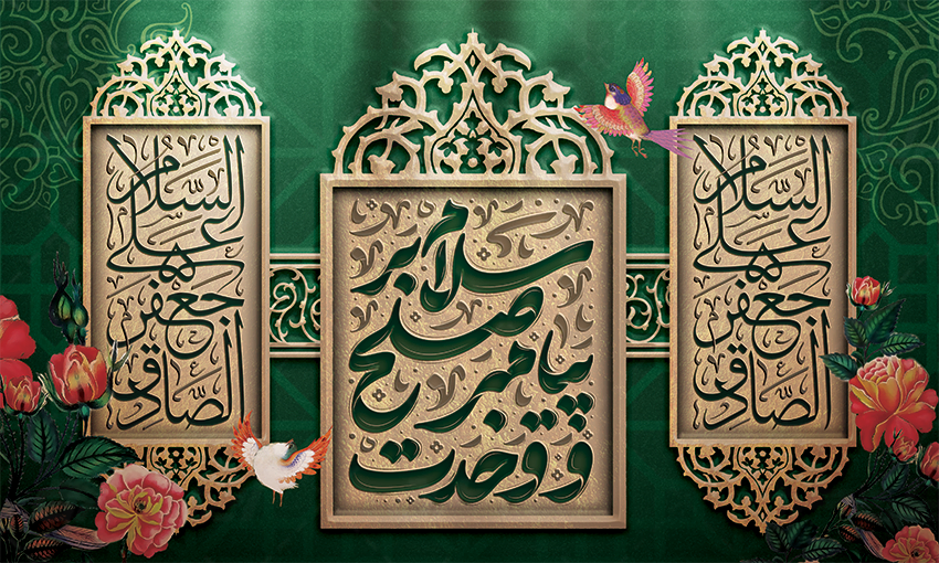 تذهیب و متن گرامیداشت ولادت حضرت محمد (ص) حضرت صادق (ع) و هفته وحدت می باشد که توسط تیم ایران طرح طراحی شده است.