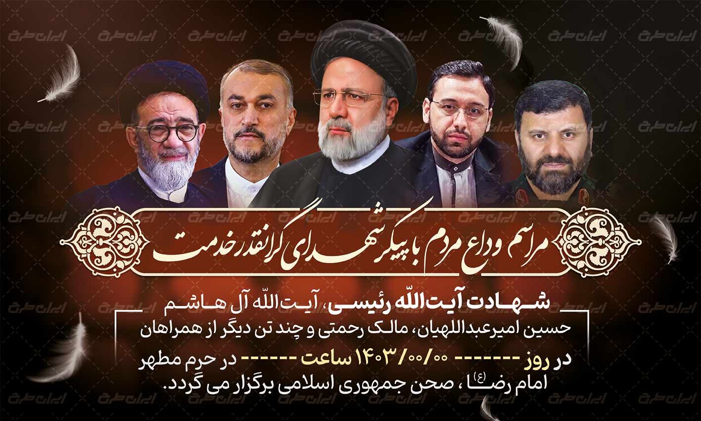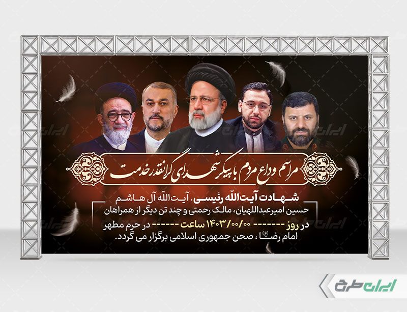 بنر تسلیت شهادت سید ابراهیم رئیسی، توسط تیم حرفه ای ایران طرح جهت استفاده کاربران سایت طراحی و به صورت لایه باز در دسترس کاربران قرار گرفته است.
