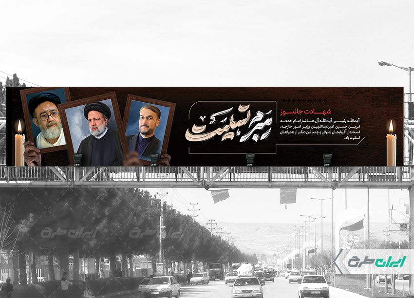 بنر تسلیت شهادت سید ابراهیم رئیسی، توسط تیم حرفه ای ایران طرح جهت استفاده کاربران سایت طراحی و به صورت لایه باز در دسترس کاربران قرار گرفته است.