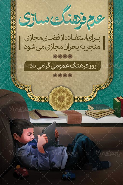 طرح بنر شهروندی، بنر پیام شهروندی فضای مجازی، بنر پیام شهروندی استفاده از فضای مجازی، پیام شهروندی استفاده از فضای مجازی، بنر شهروندی، بنر شهروندی، پیام شهروندی، تایپوگرافی عدم فرهنگ سازی، تصویر سازی استفاده از فضای مجازی، تذهیب، کادر مذهبی، کادر اسلامی و متن عدم فرهنگ سازی در استفاده از فضای مجازی موجب ایجاد بحران می شود