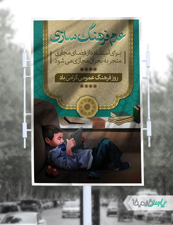 طرح بنر پیام شهروندی فضای مجازی شامل: تایپوگرافی عدم فرهنگ سازی، تصویر سازی استفاده از فضای مجازی، تذهیب، کادر مذهبی، کادر اسلامی و متن عدم فرهنگ سازی در استفاده از فضای مجازی موجب ایجاد بحران می شود می باشد که توسط تیم پارس گرافیک طراحی شده است. به دلیل استفاده از عناصر و المان های با کیفیت در طرح بنر شهروندی، می توانید علاوه بر چاپ بنر (به صورت عمودی)، در استوری اینستاگرام یا دیگر پلت فرم های فضای مجازی جهت انتقال پیام به شهروندان استفاده نمایید. ضمنا به دلیل لایه باز بود طرح بنر شهروندی می توانید با استفاده از نرم افزار فتوشاپ تغییرات دلخواه خود را اعمال کنید.