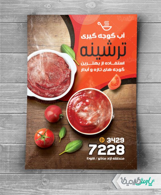 - طراحی ساده و کاربردی تراکت آب گوجه گیری