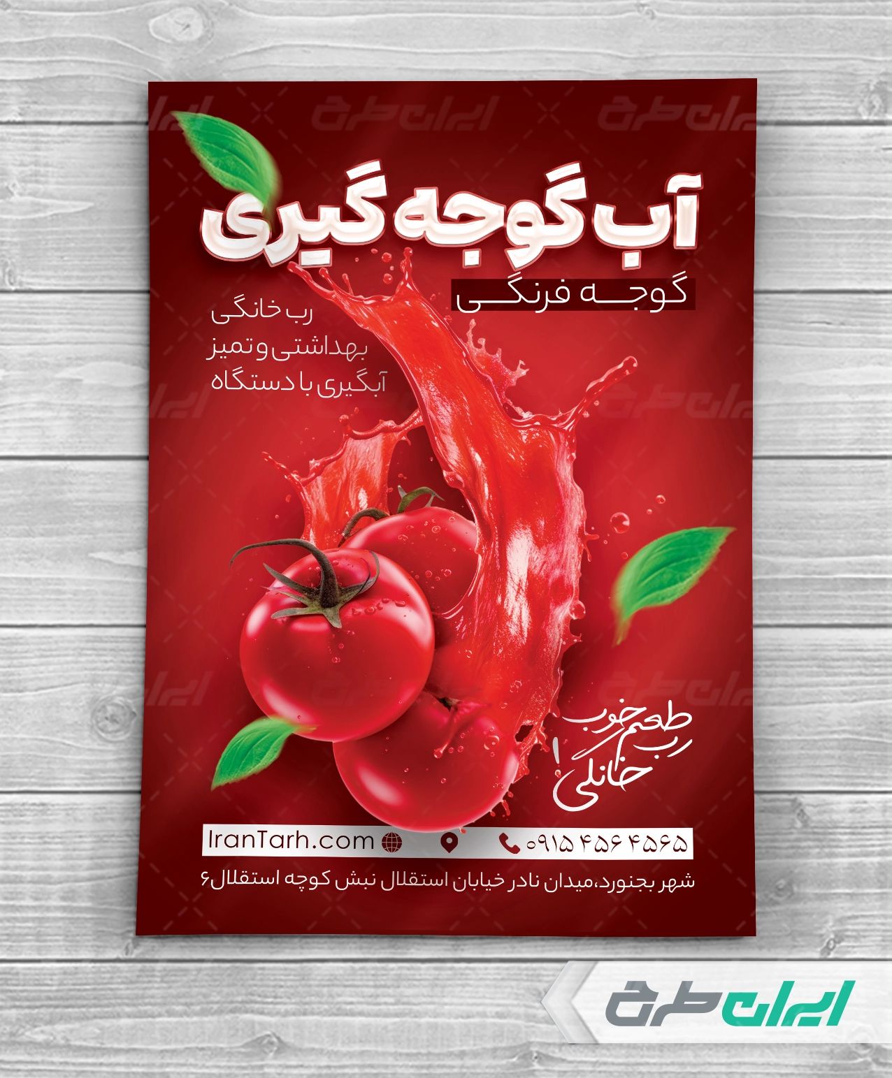 - طراحی ساده و کاربردی تراکت آب گوجه گیری