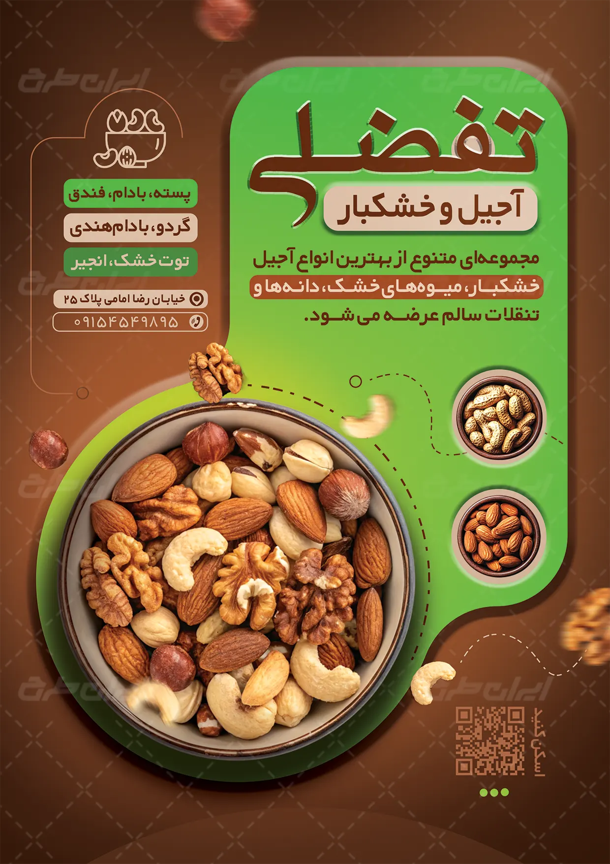 طرح تراکت فروشگاه آجیل و خشکبار شامل: