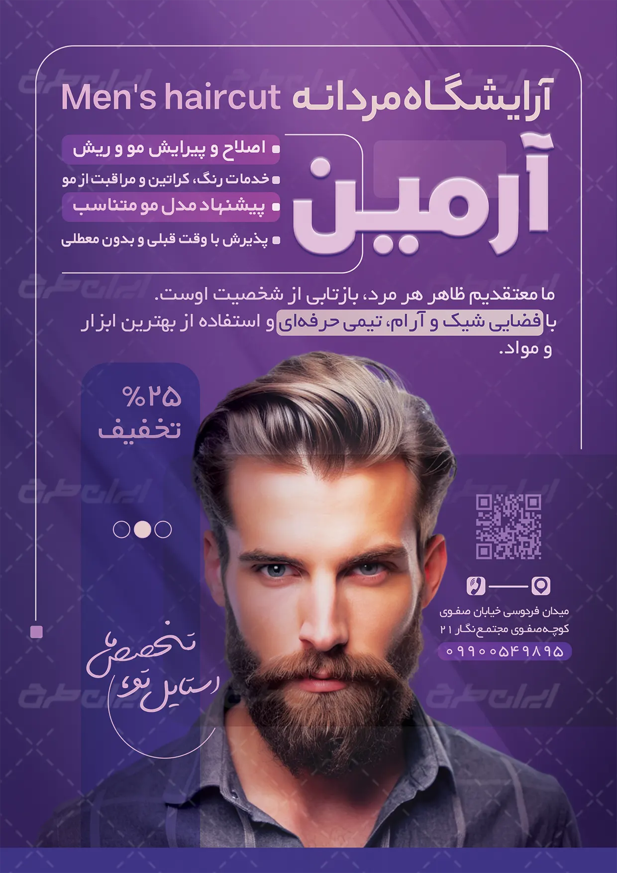 طرح تراکت لایه باز آرایشگاه مردانه، توسط تیم ایران طرح جهت تبلیغات و بازاریابی این دسته از مشاغل طراحی و در دسترس کاربران سایت قرار گرفته است.