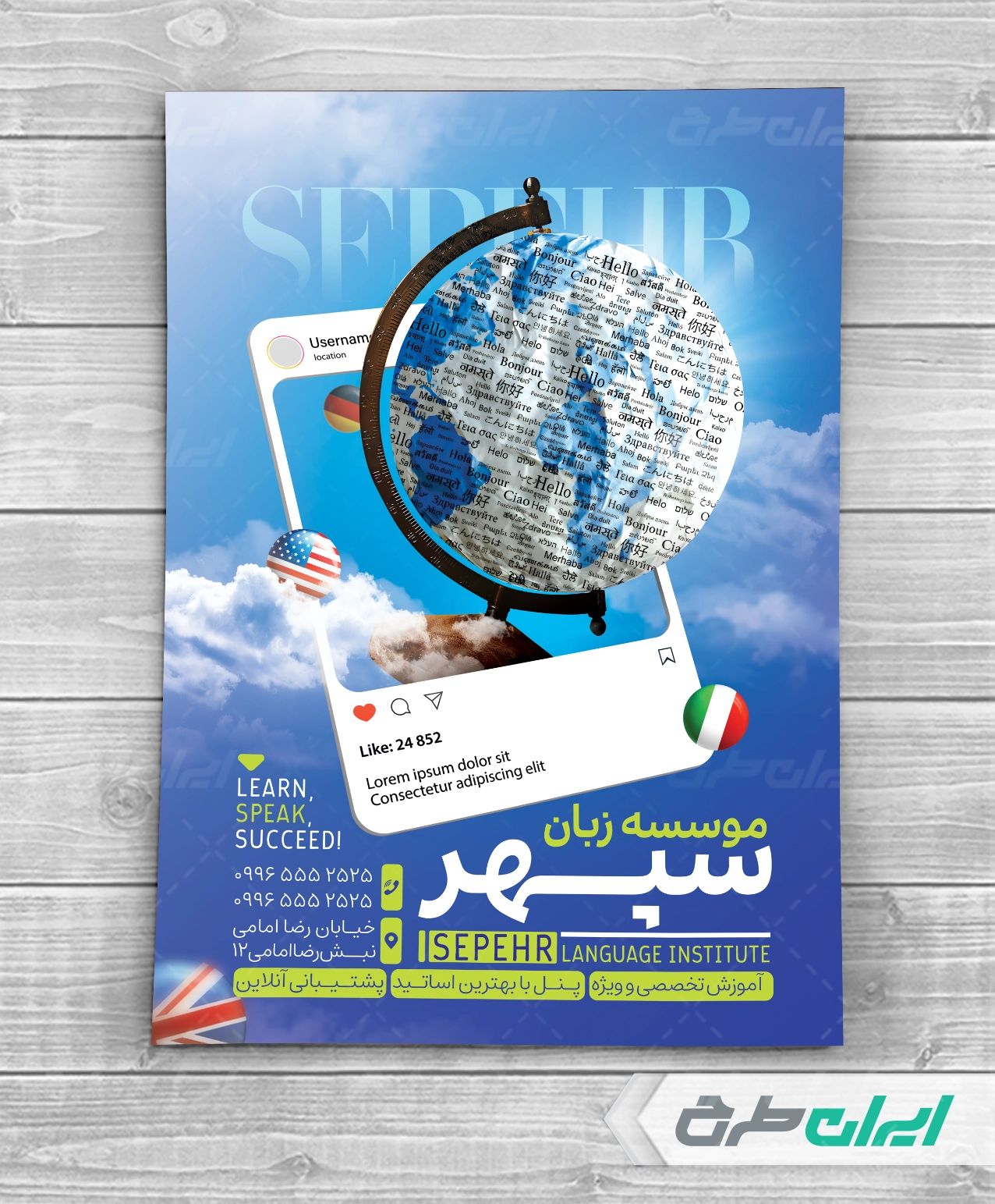 - طراحی شیک و کاربردی تراکت موسسه زبان