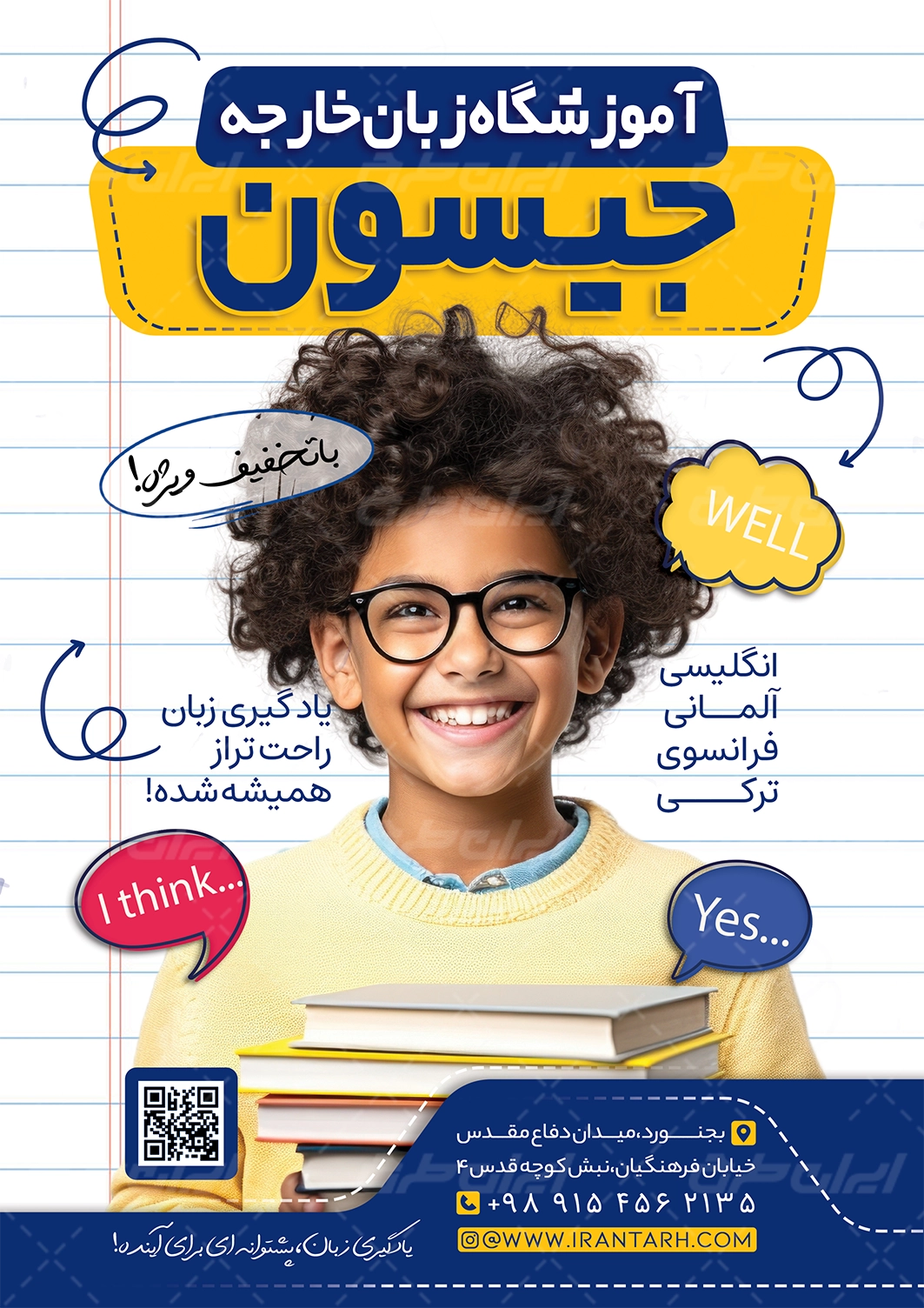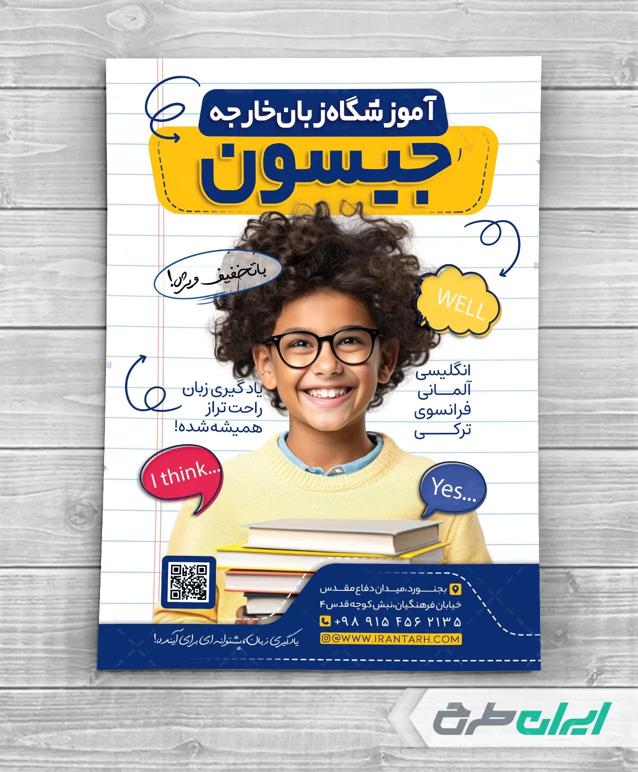 - طراحی شیک و کاربردی تراکت موسسه زبان