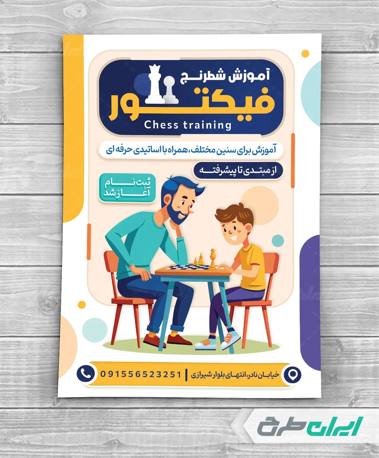 تیم ایران طرح طرح تراکت آموزشگاه شطرنج را برای بازاریابی و تبلیغات گسترده تر این مشاغل طراحی و در دسترس کاربران سایت قرار داده است.