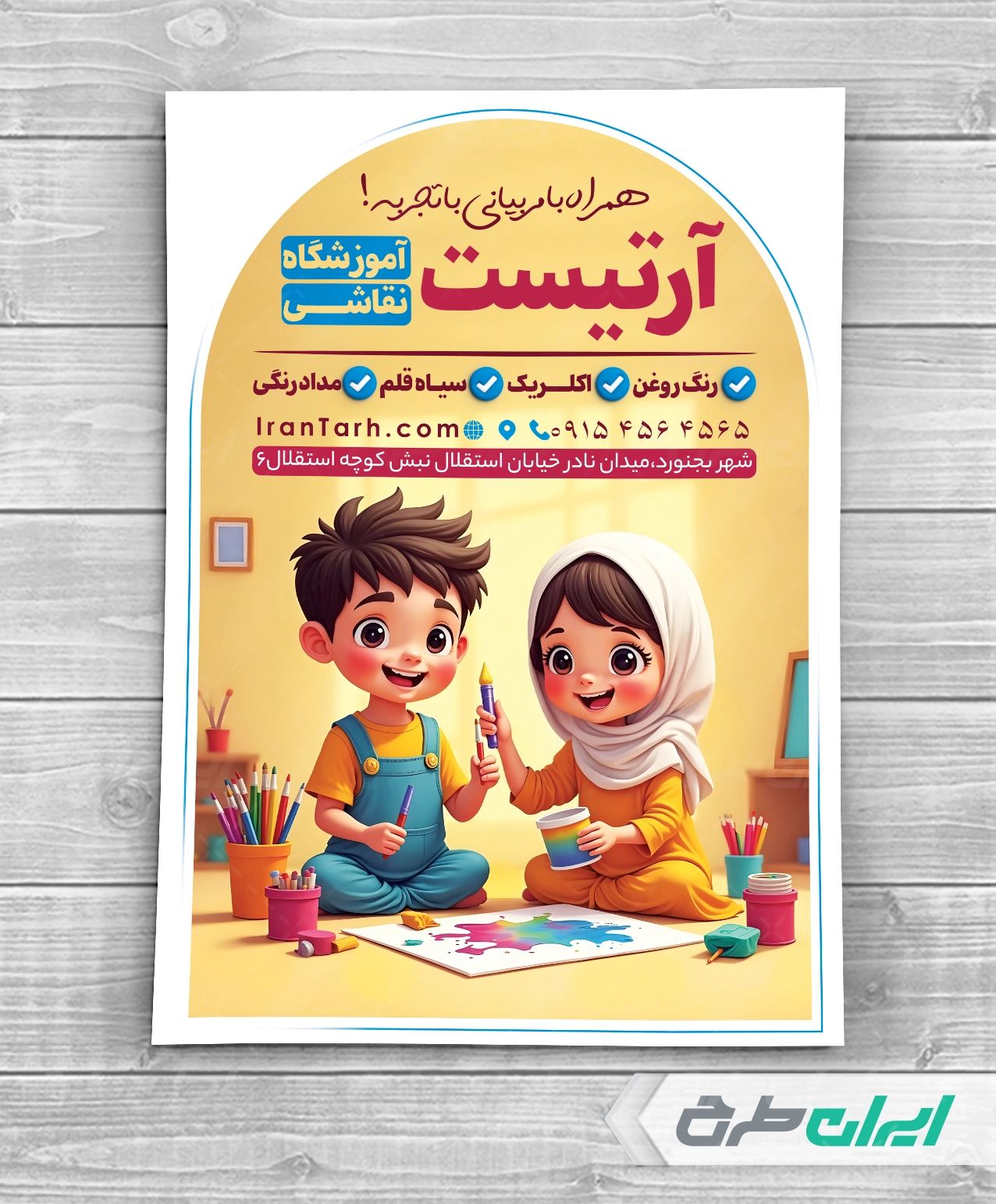 طرح تراکت آموزشگاه نقاشی، توسط تیم مجرب ایران طرح جهت تبلیغات و بازاریابی این دسته از آموزشگاه ها طراحی و در دسترس کاربران سایت قرار گرفته است.