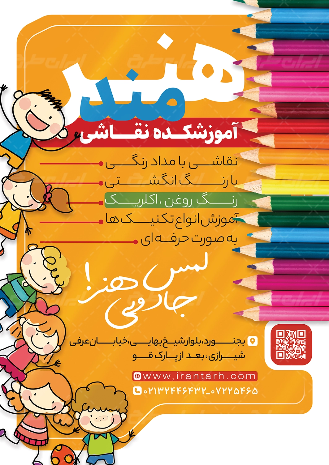 طرح تراکت آموزشگاه نقاشی، توسط تیم مجرب ایران طرح جهت تبلیغات و بازاریابی این دسته از آموزشگاه ها طراحی و در دسترس کاربران سایت قرار گرفته است.