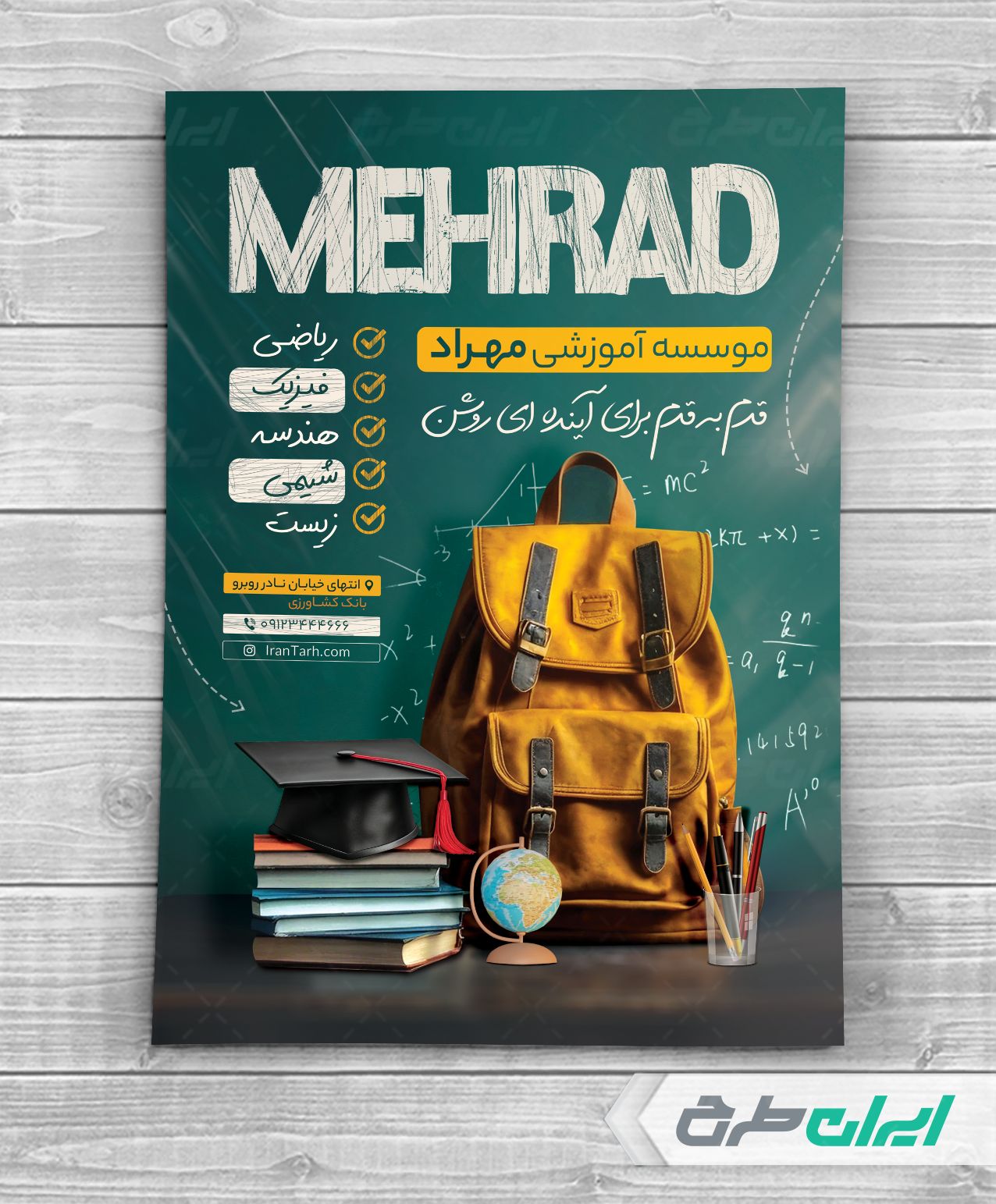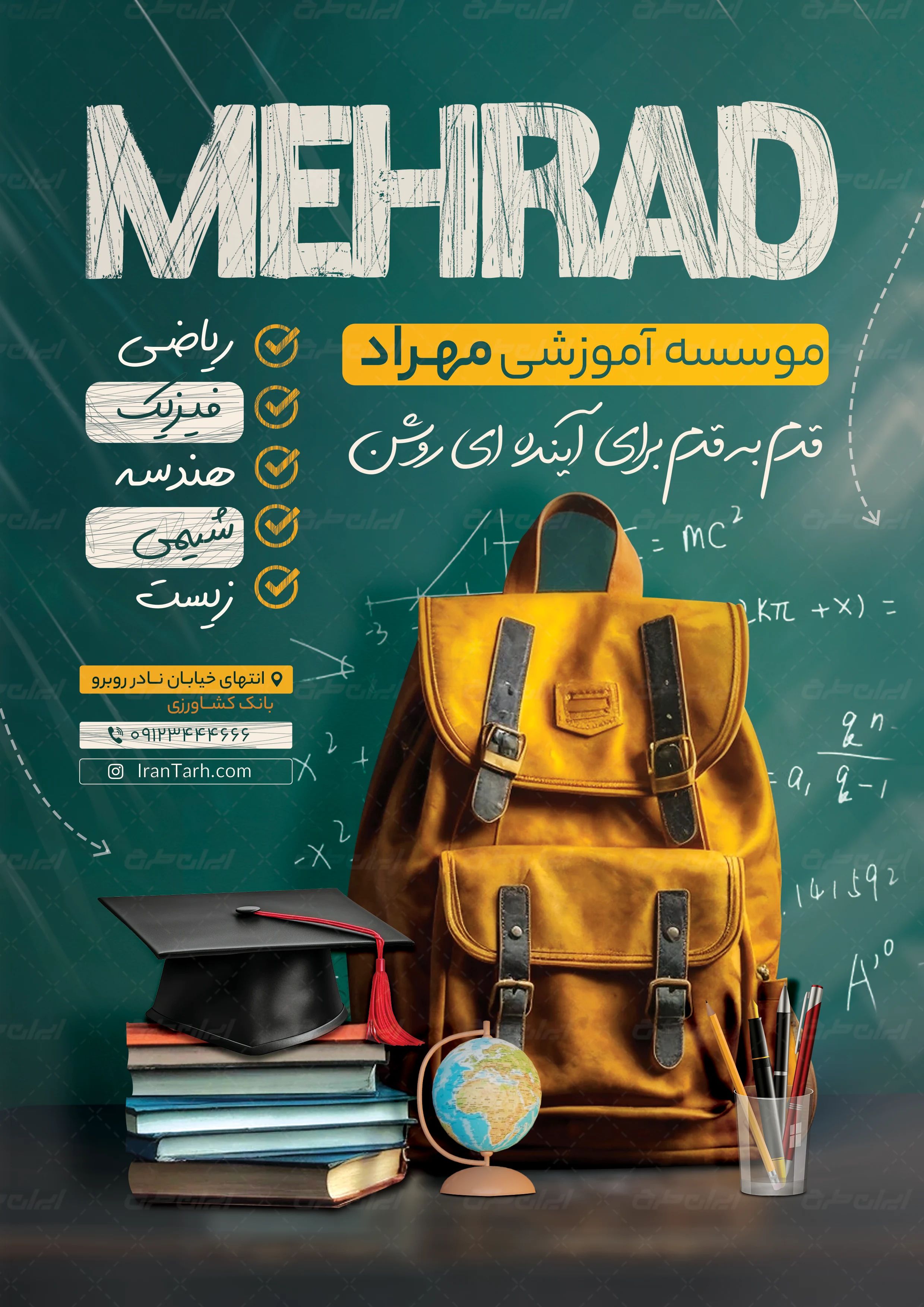 - استفاده مناسب از عکس با کیفیت کوله پشتی در طرح تراکت کلاس های درسی کنکور