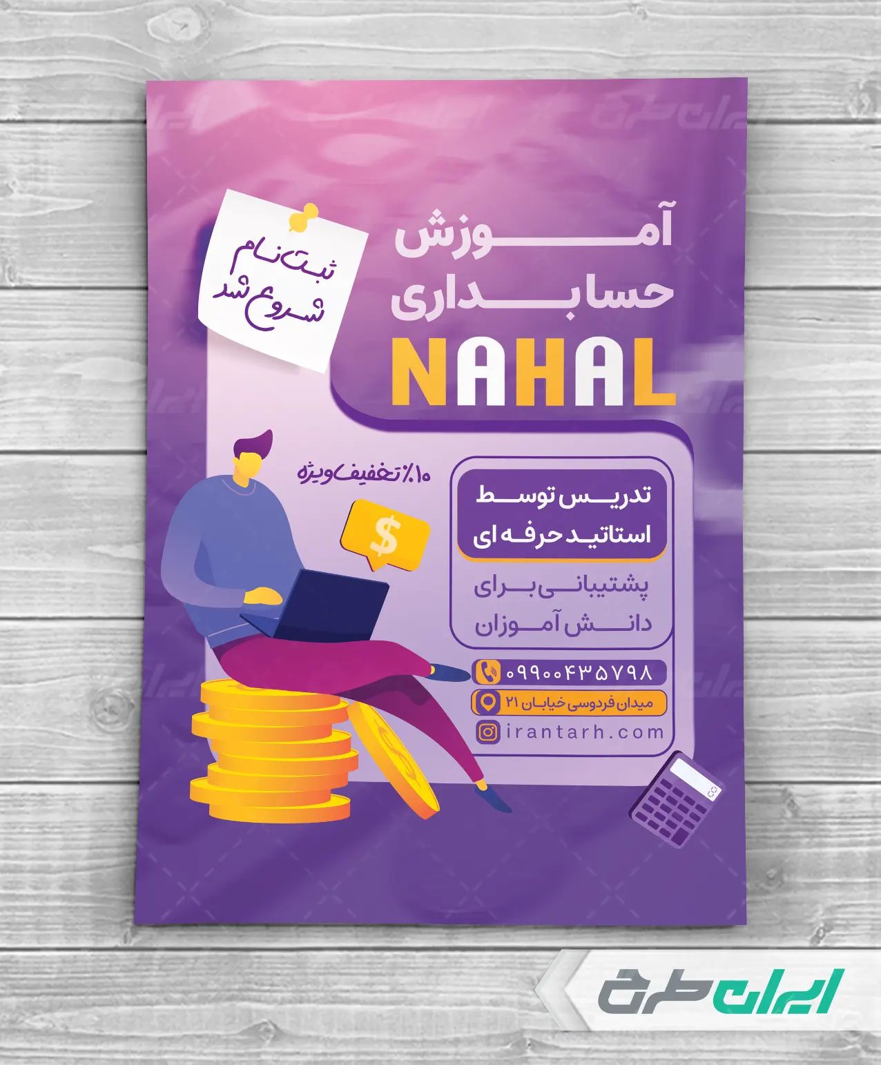 - طراحی ساده و کاربردی تراکت آموزش حسابداری