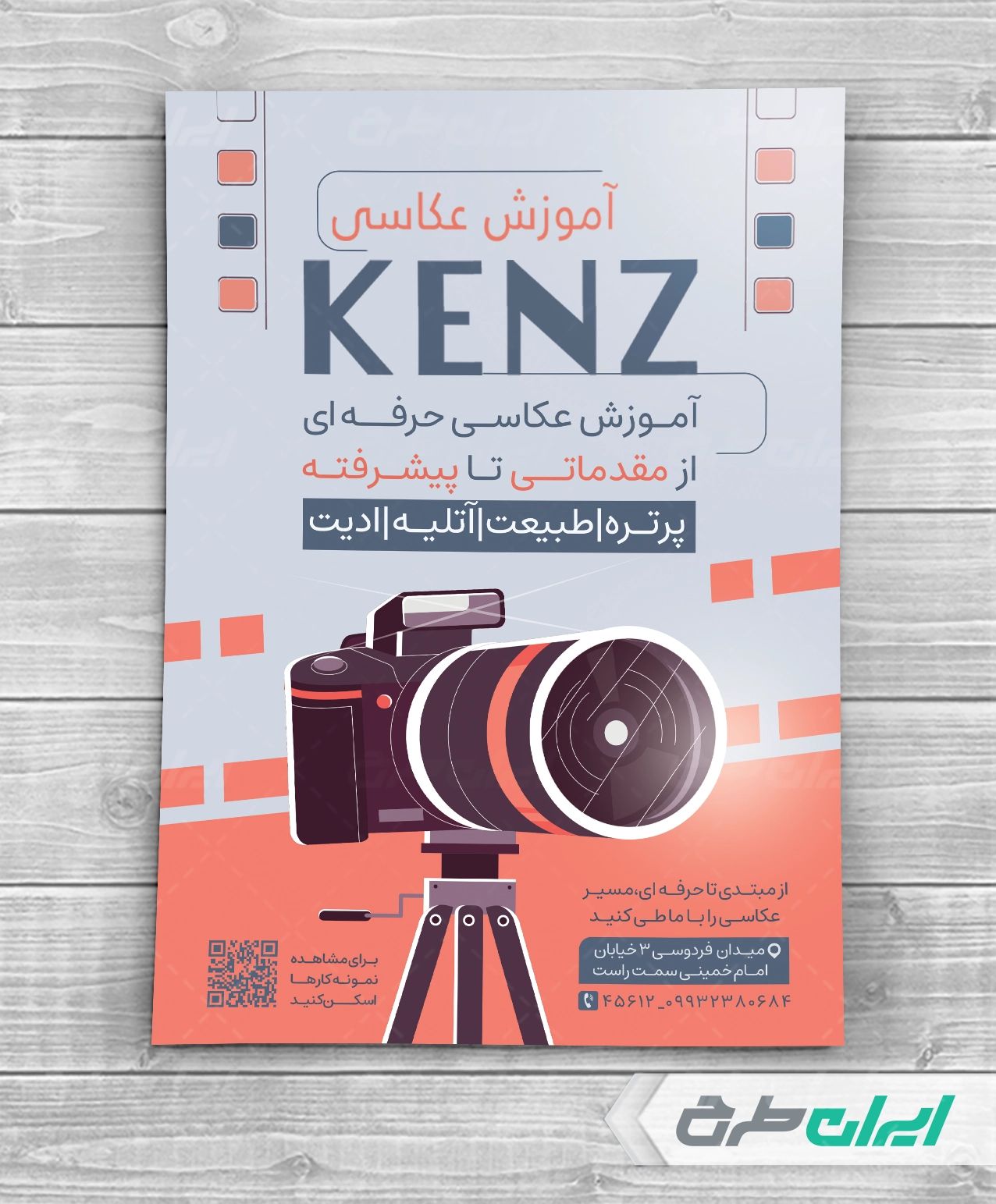 طرح تراکت آموزش عکاسی و فیلمبرداری شامل: