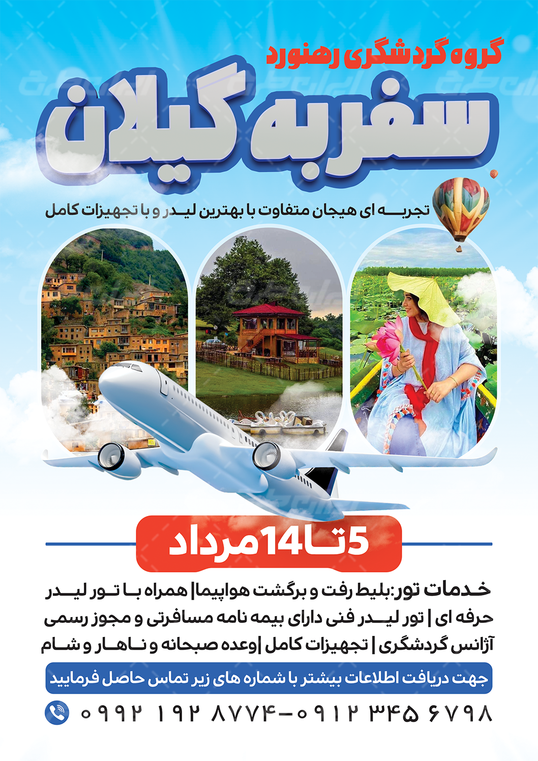 - استفاده از تصویر هواپیما که مناسب طرح تراکت تور مسافرتی می باشد.