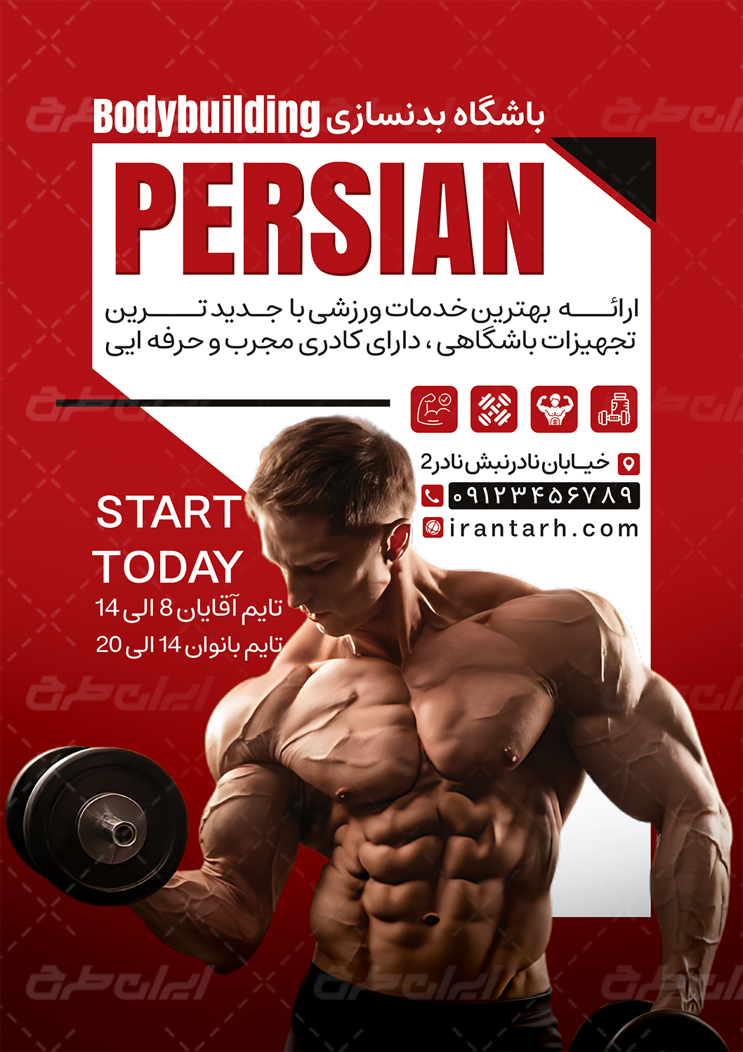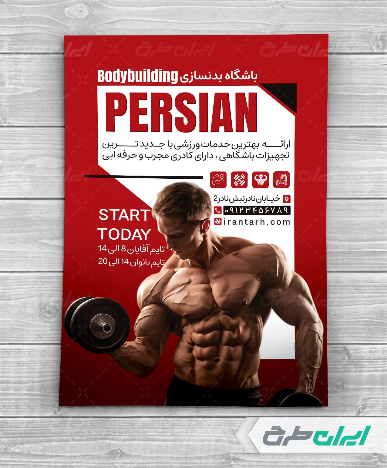تراکت باشگاه بدنسازی، توسط تیم ایران طرح جهت تبلیغات و بازاریابی این مشاغل طراحی و در دسترس کاربران سایت قرار گرفته است.