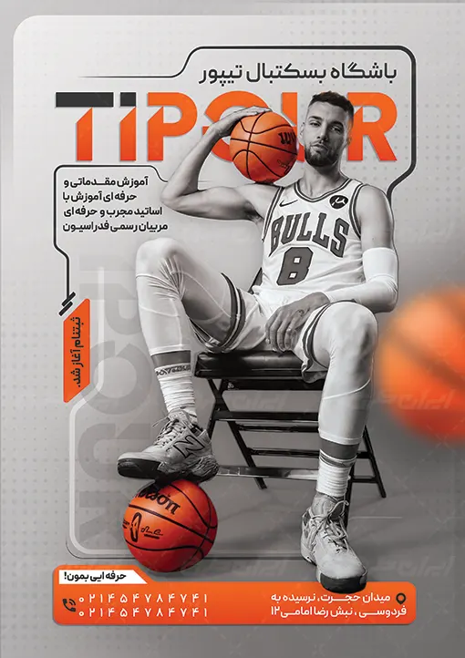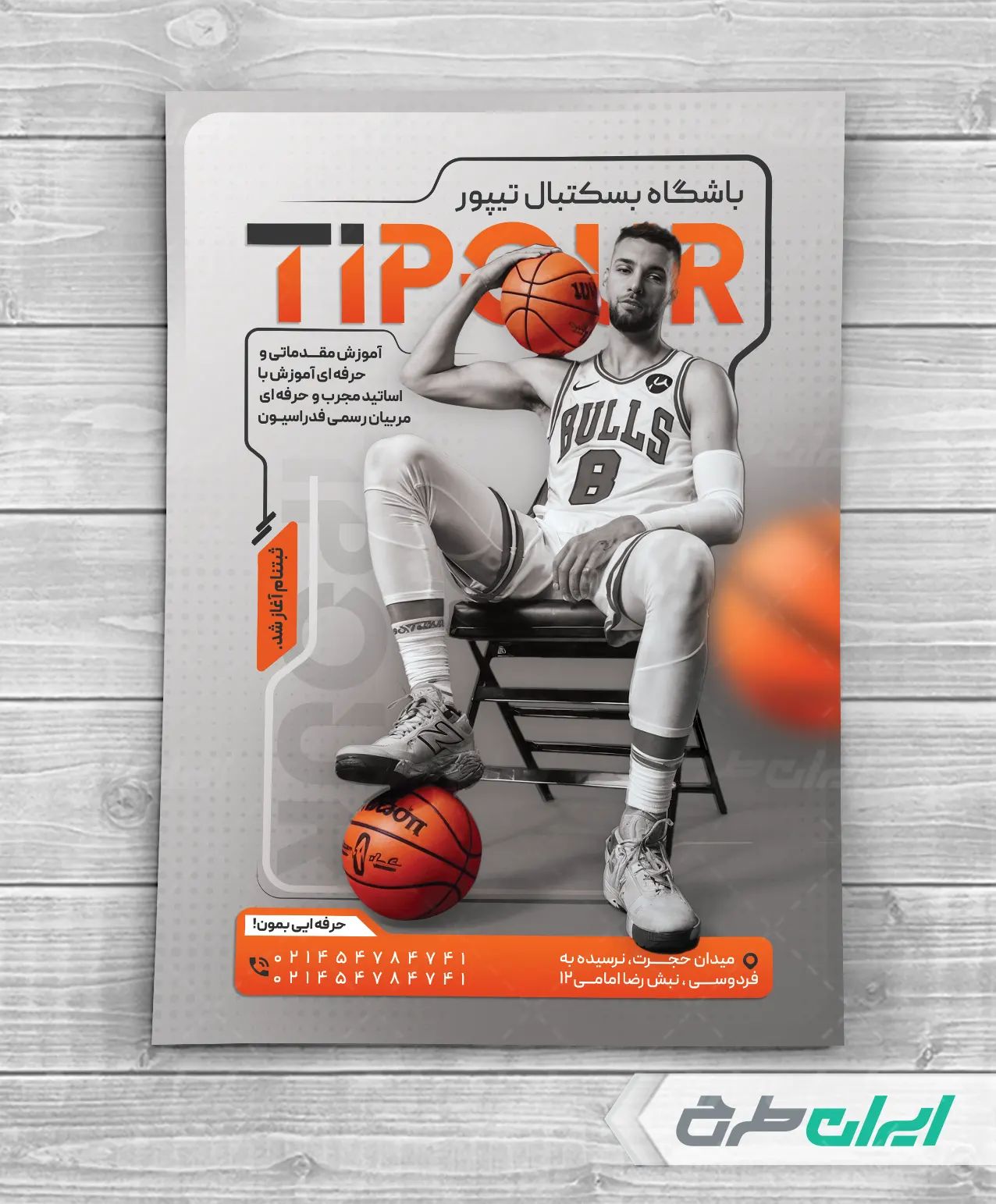 طرح تراکت آموزشگاه بسکتبال شامل: