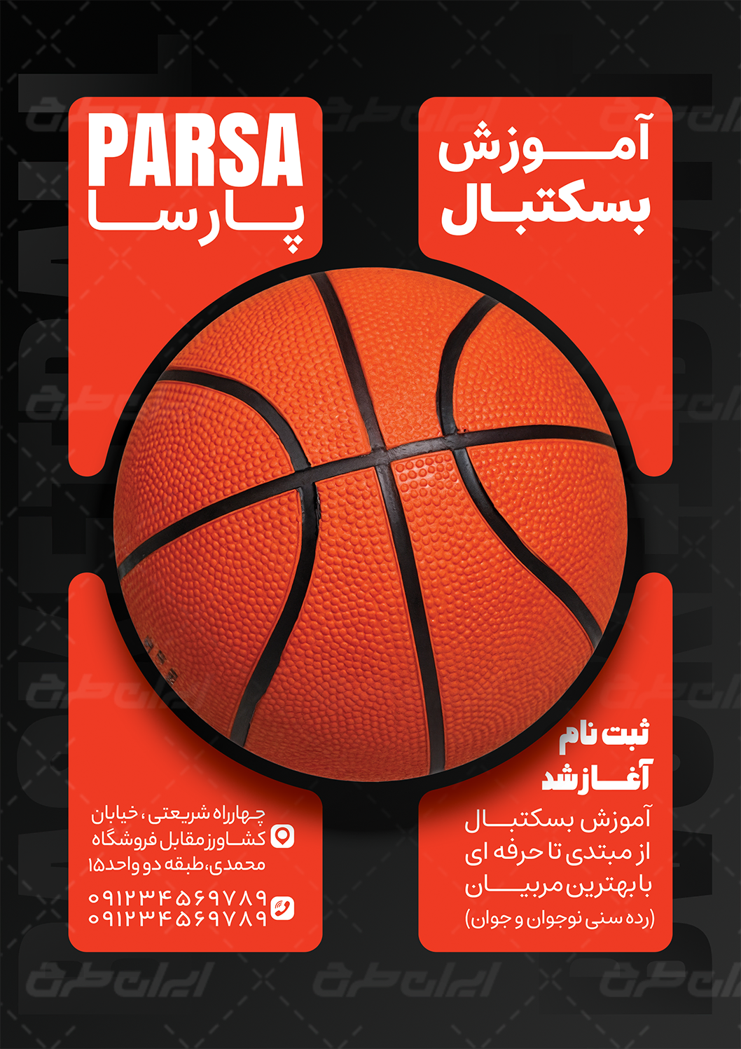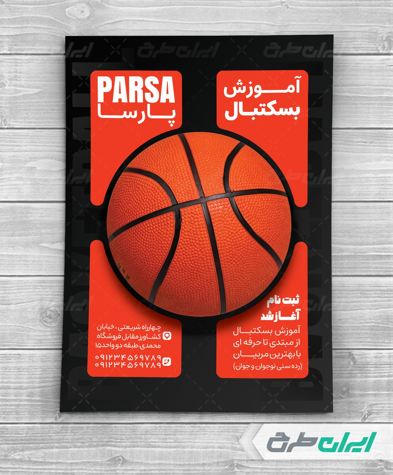 طرح تراکت آموزشگاه بسکتبال شامل: