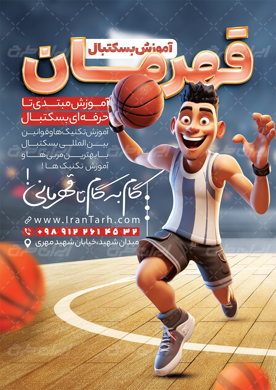 طرح تراکت آموزشگاه بسکتبال شامل: