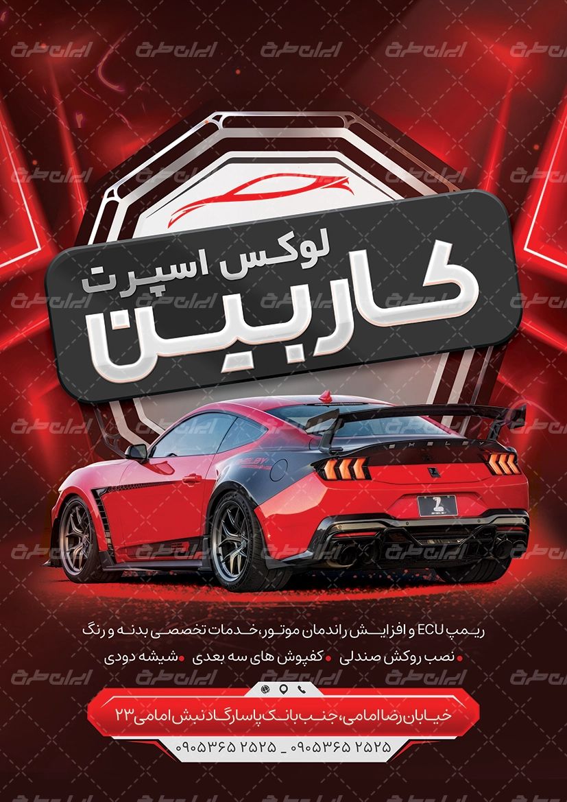 - استفاده مناسب از عکس باکیفیت ماشین خارجی که مناسب طرح تراکت لایه باز تو دوزی و تزئینات ماشین می باشد.