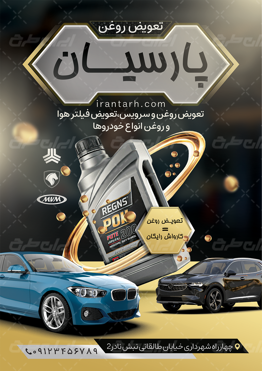 - استفاده از عکس با کیفیت ماشین که مناسب با طرح تراکت تعویض روغنی می باشد.