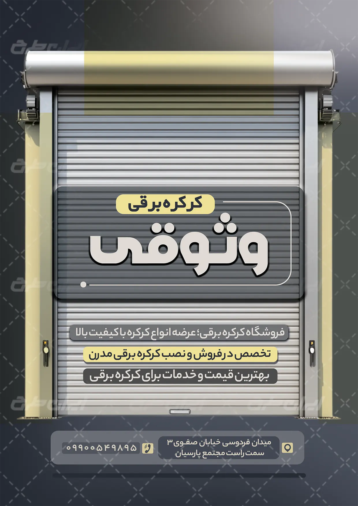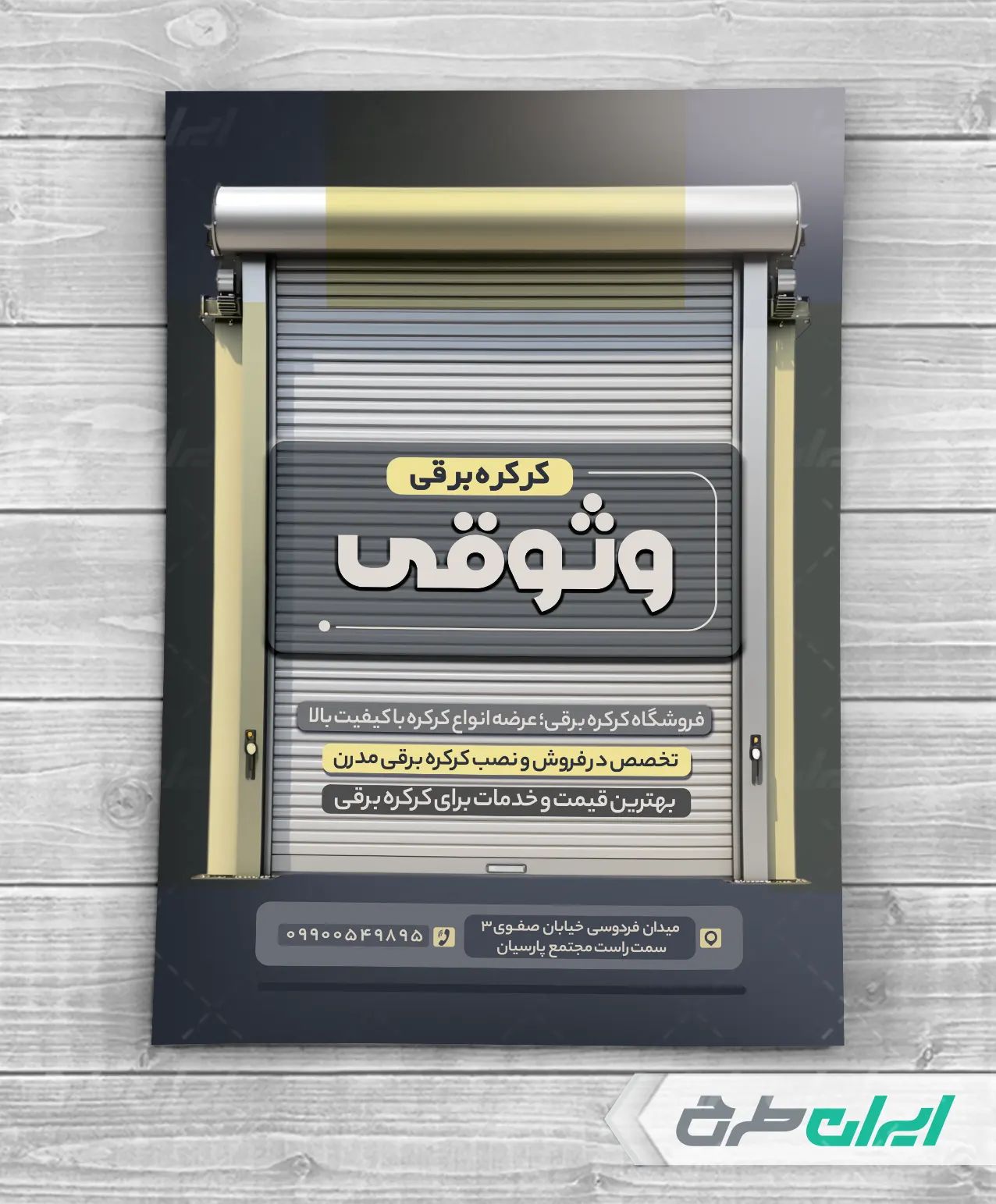 طرح تراکت جک و کرکره برقی، جهت بازاریابی و تبلیغات این دسته از فروشگاه ها توسط تیم طراحان ایران طرح طراحی و در دسترس کاربران سایت قرار گرفته است.