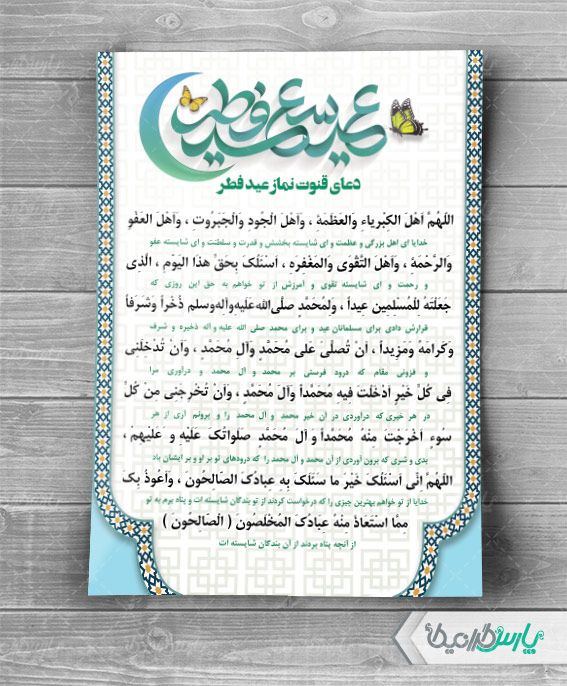 متن دعای قنوت نماز عید بصورت عمودی و در ابعاد A5 طراحی شده و کاملا قابل ویرایش می باشد