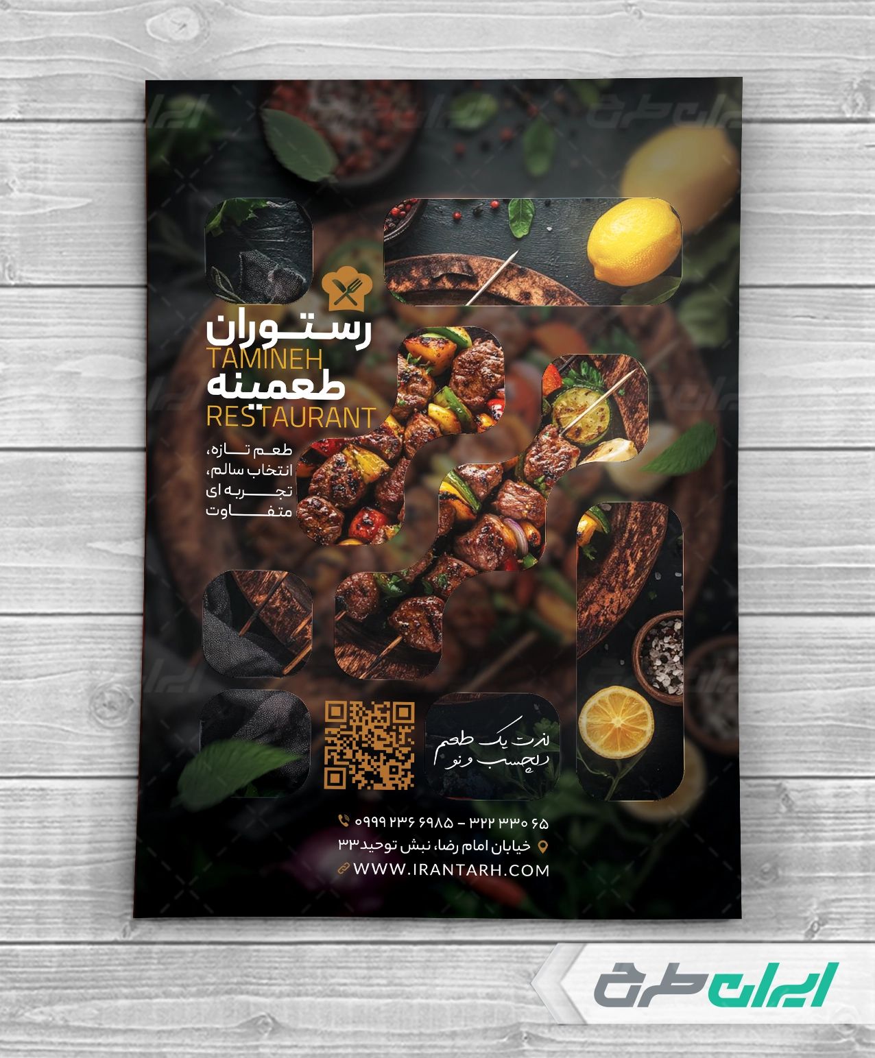 طرح تراکت لایه باز رستوران، توسط تیم ایران طرح برای بازاریابی و تبلیغات این دسته از مشاغل طراحی شده است.