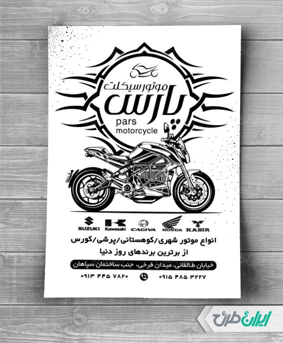 - طراحی ساده و کاربردی تراکت ریسو فروشگاه موتور سیکلت