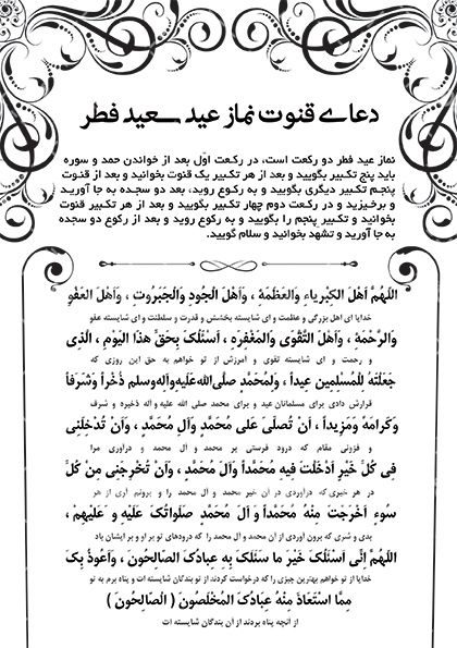 متن دعای قنوت نماز عید بصورت عمودی و در ابعاد A5 طراحی شده و کاملا قابل ویرایش می باشد