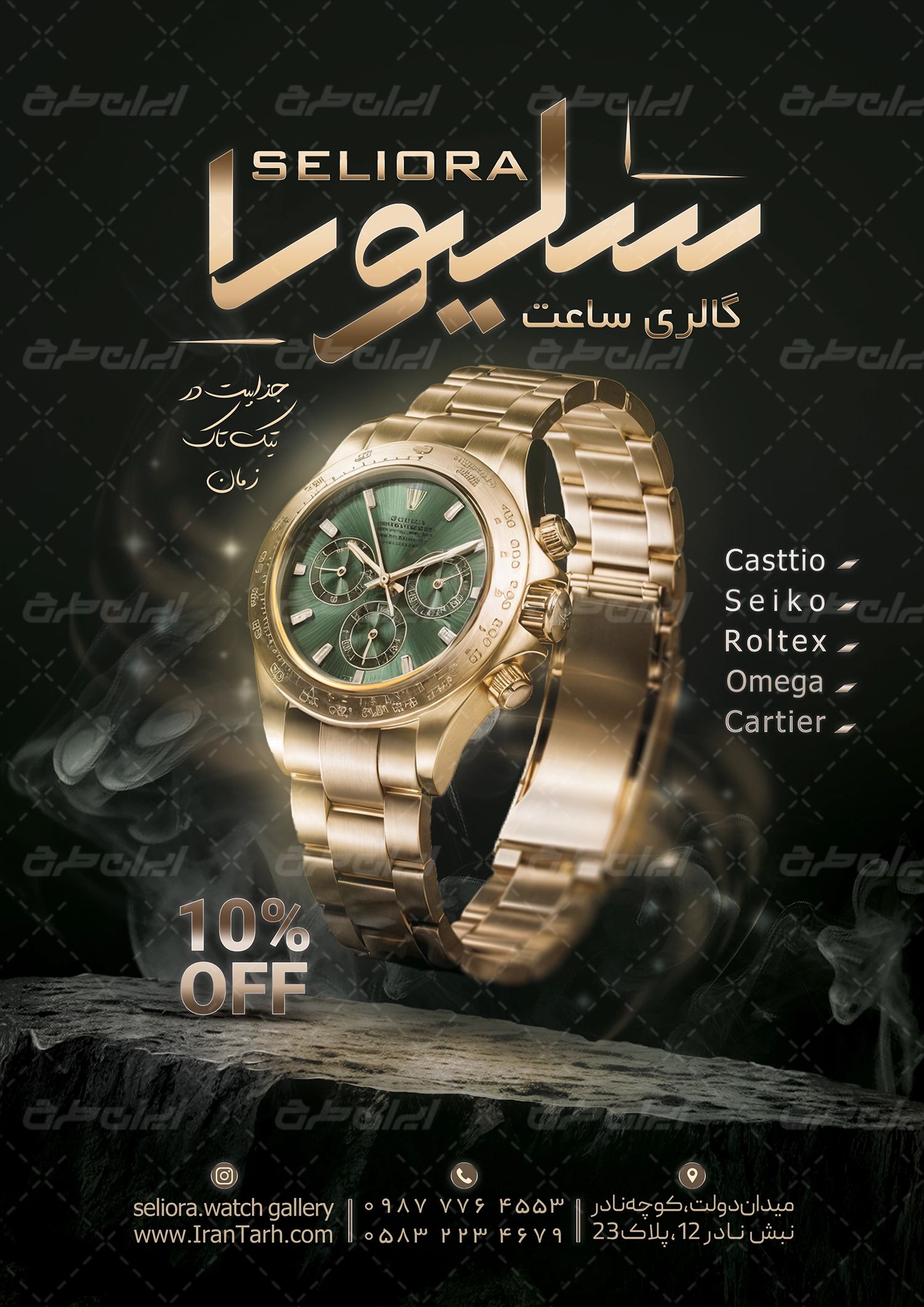 - طراحی ساده و شیک طرح تراکت ساعت فروشی