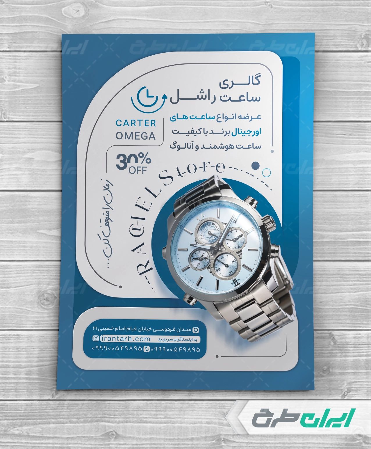 - طراحی ساده و شیک طرح تراکت ساعت فروشی