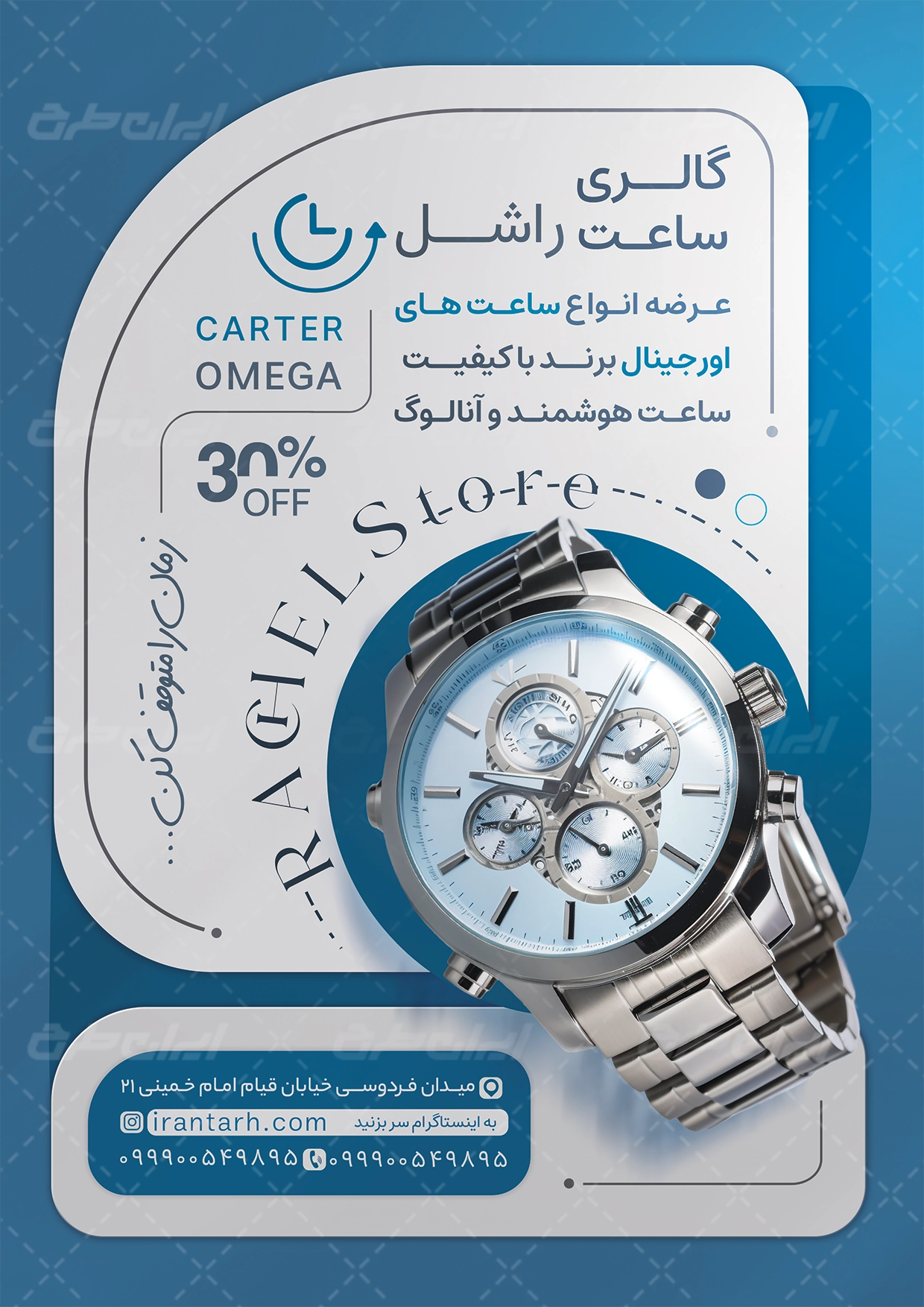 - طراحی ساده و کاربردی تراکت ساعت فروشی