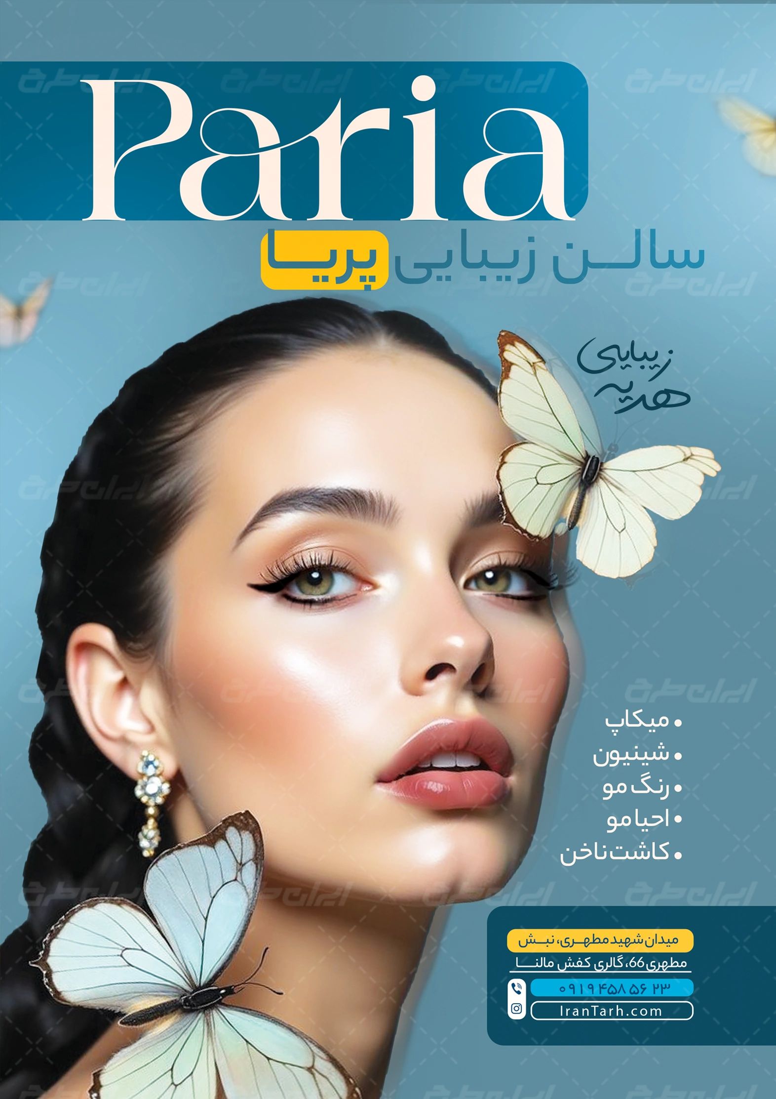 تراکت لایه باز آرایشگاه زنانه، توسط تیم ایران طرح جهت تبلیغات و بازاریابی این مکان ها طراحی و در دسترس کاربران سایت قرار گرفته است.