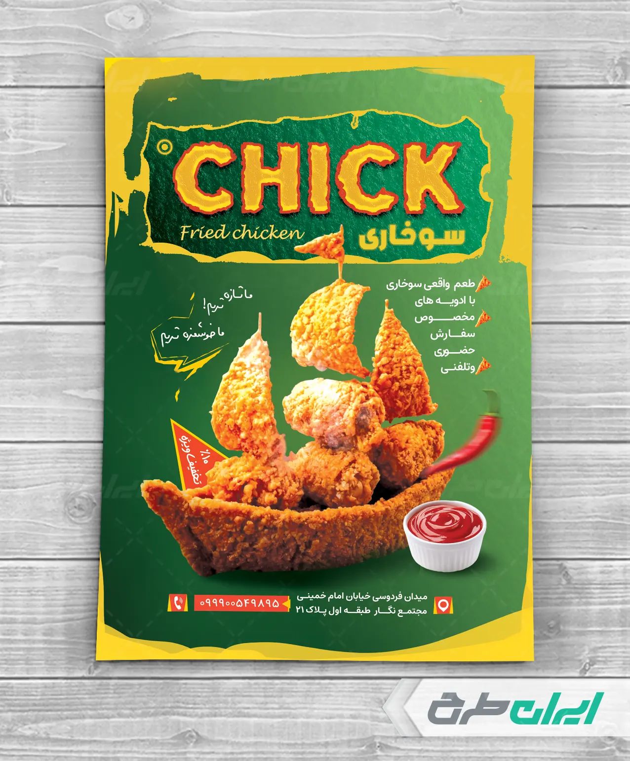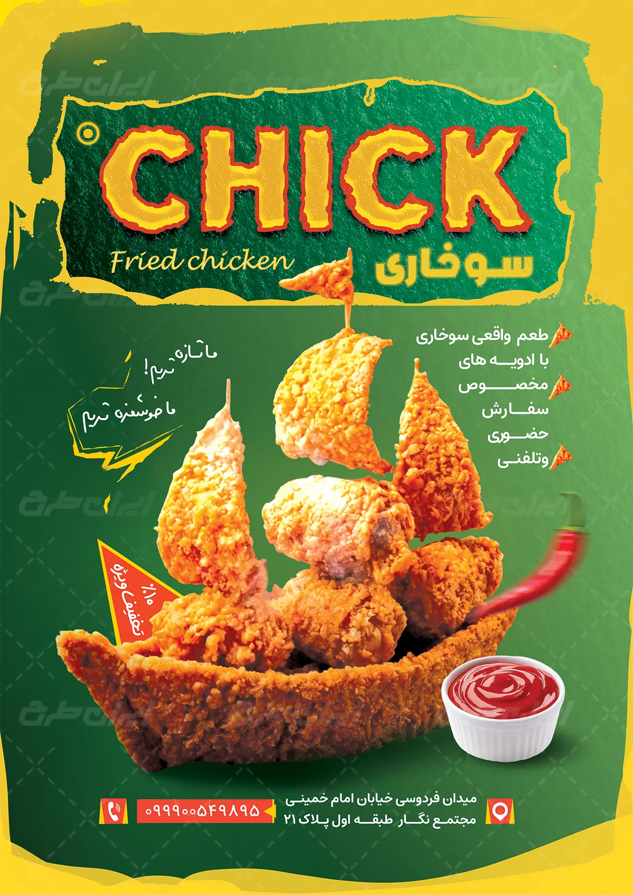 - طراحی تراکت با استفاده از عکس با کیفیت مرغ سوخاری