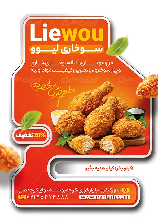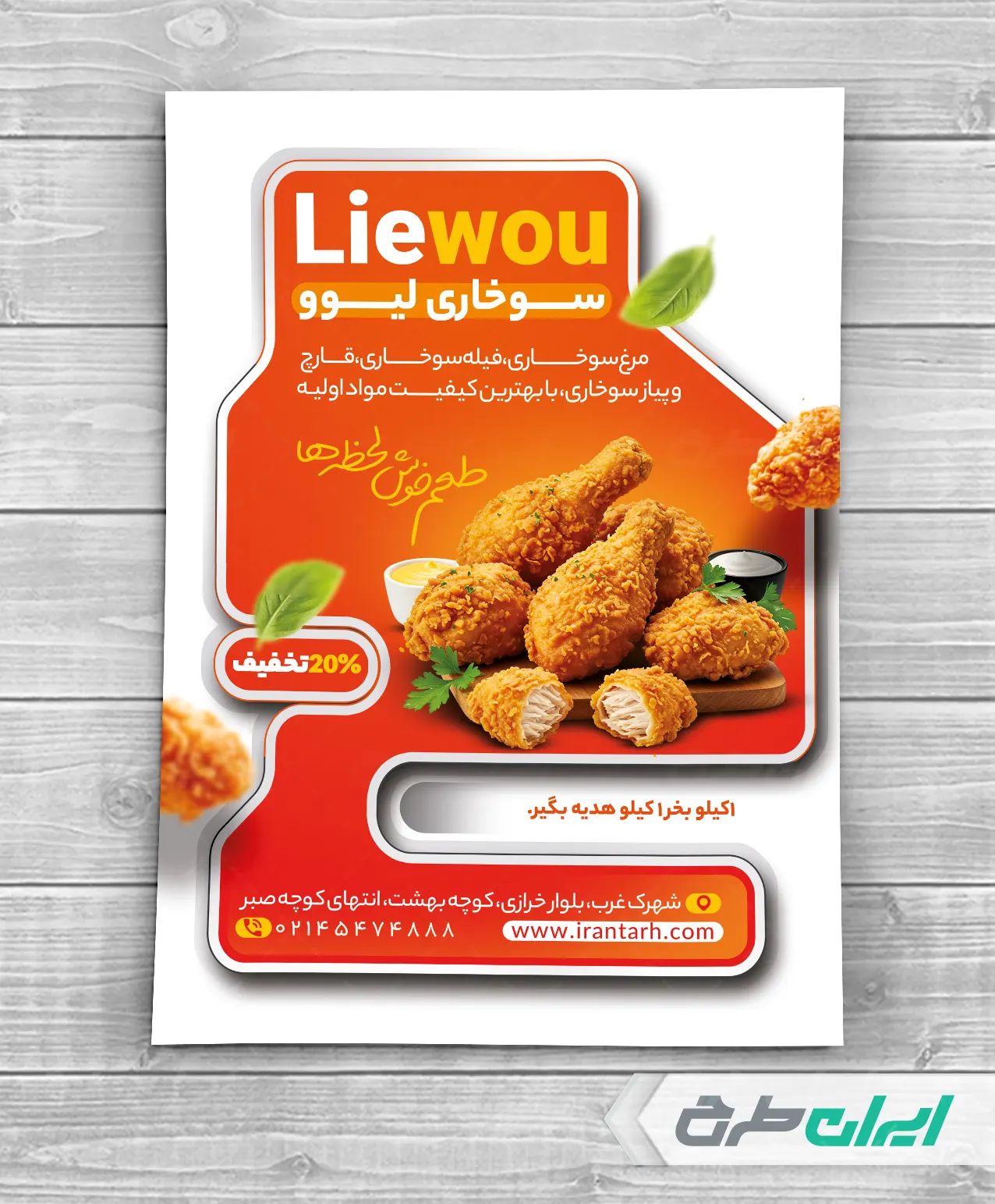 - طراحی تراکت با استفاده از عکس با کیفیت مرغ سوخاری