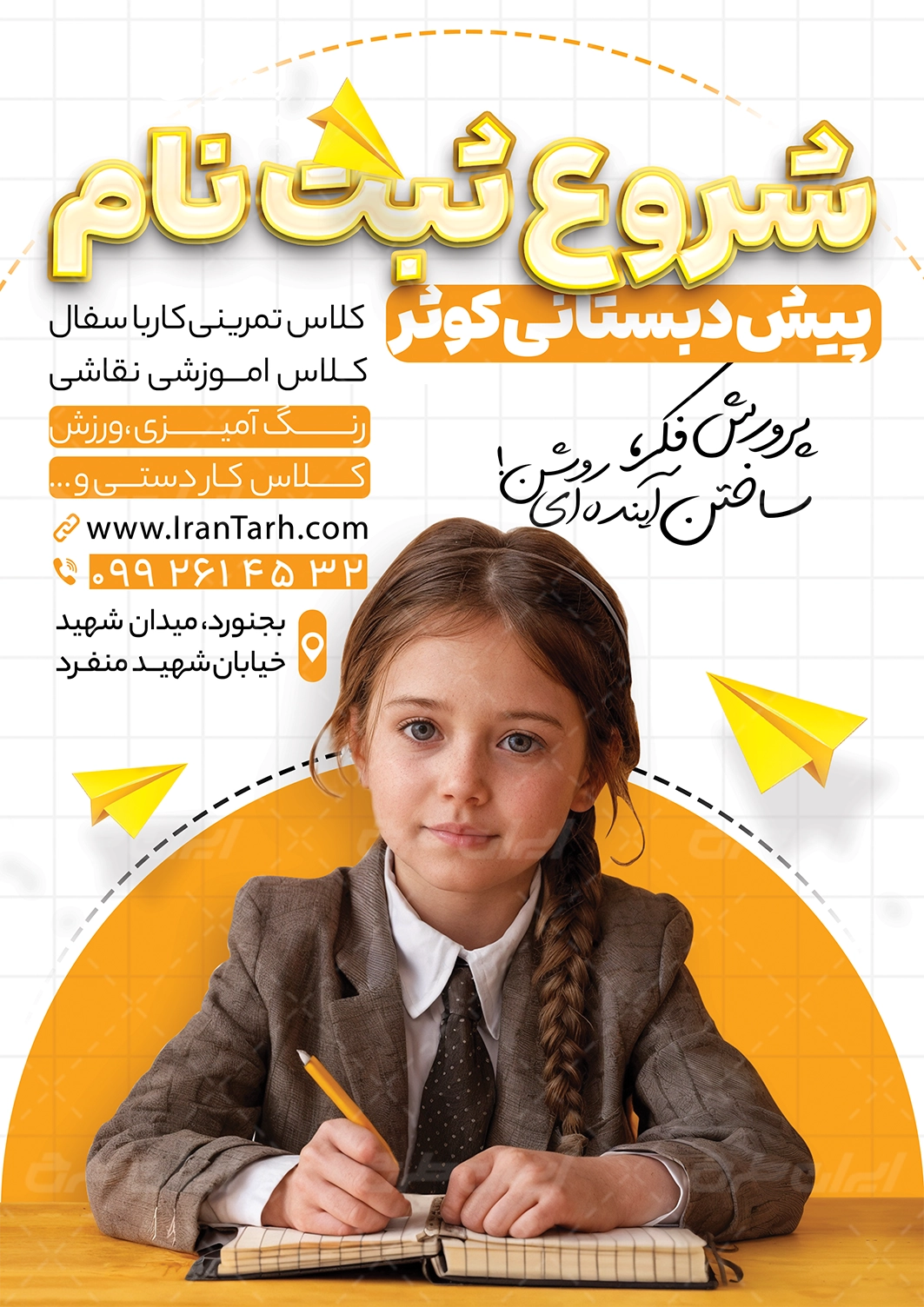 - استفاده از تصویر کودک در طرح تراکت پیش دبستانی می باشد.