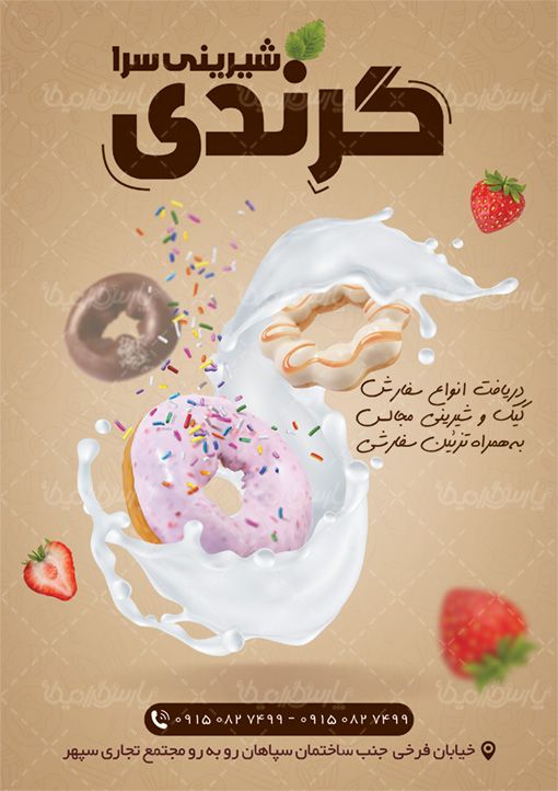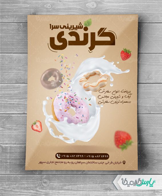 از طرح تراکت شیرینی سرا می توانید بعنوان کارت ویزیت قنادی و شیرینی سرا استفاده نمایید.