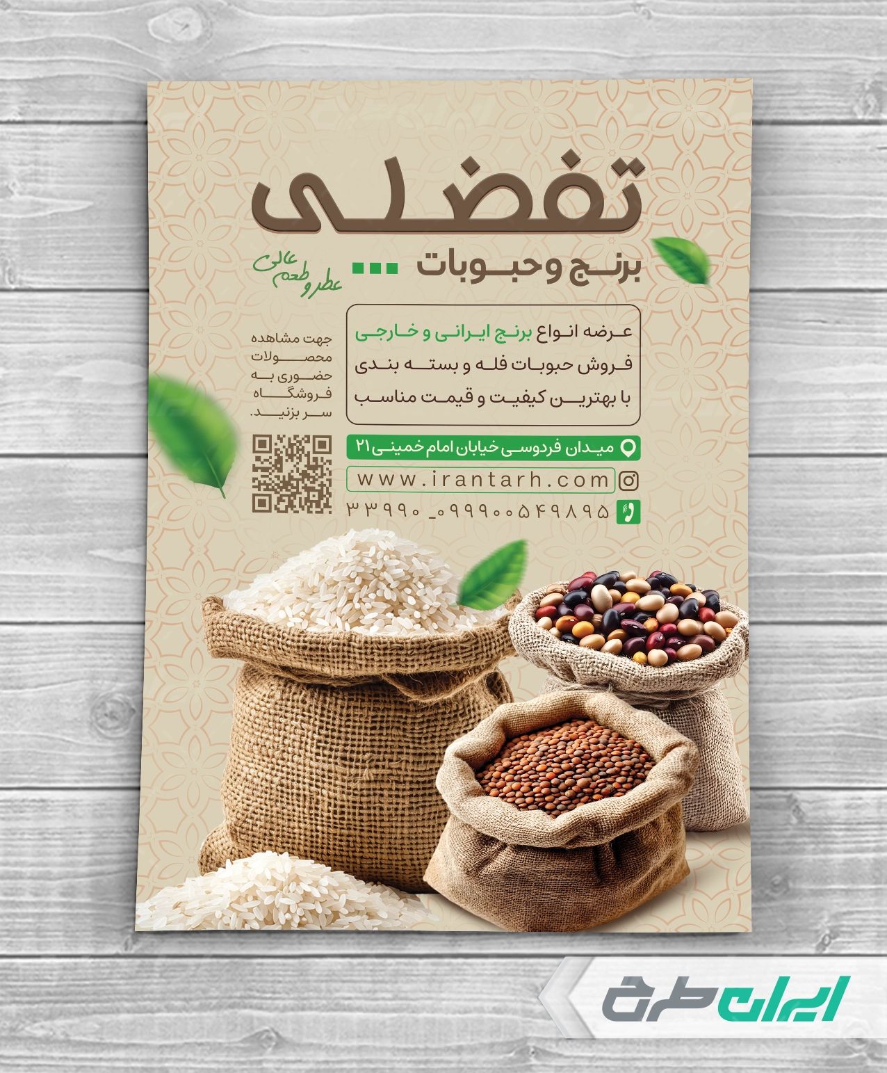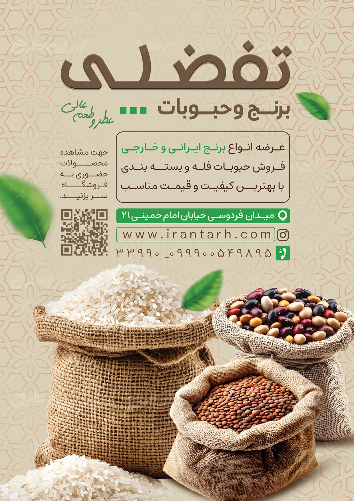 طرح تراکت فروشگاه برنج و حبوبات شامل:
