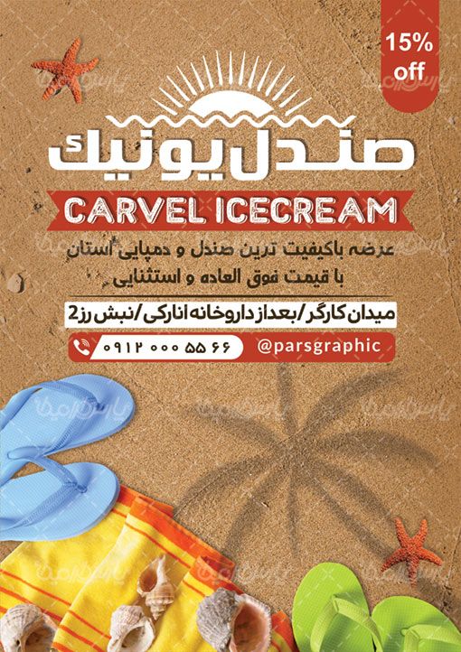طرح تراکت لایه باز فروشگاه صندل و دمپایی، جهت بازاریابی و تبلیغات این فروشگاه ها توسط پارس گرافیک طراحی و در اختیار کاربران سایت قرار گرفته است.