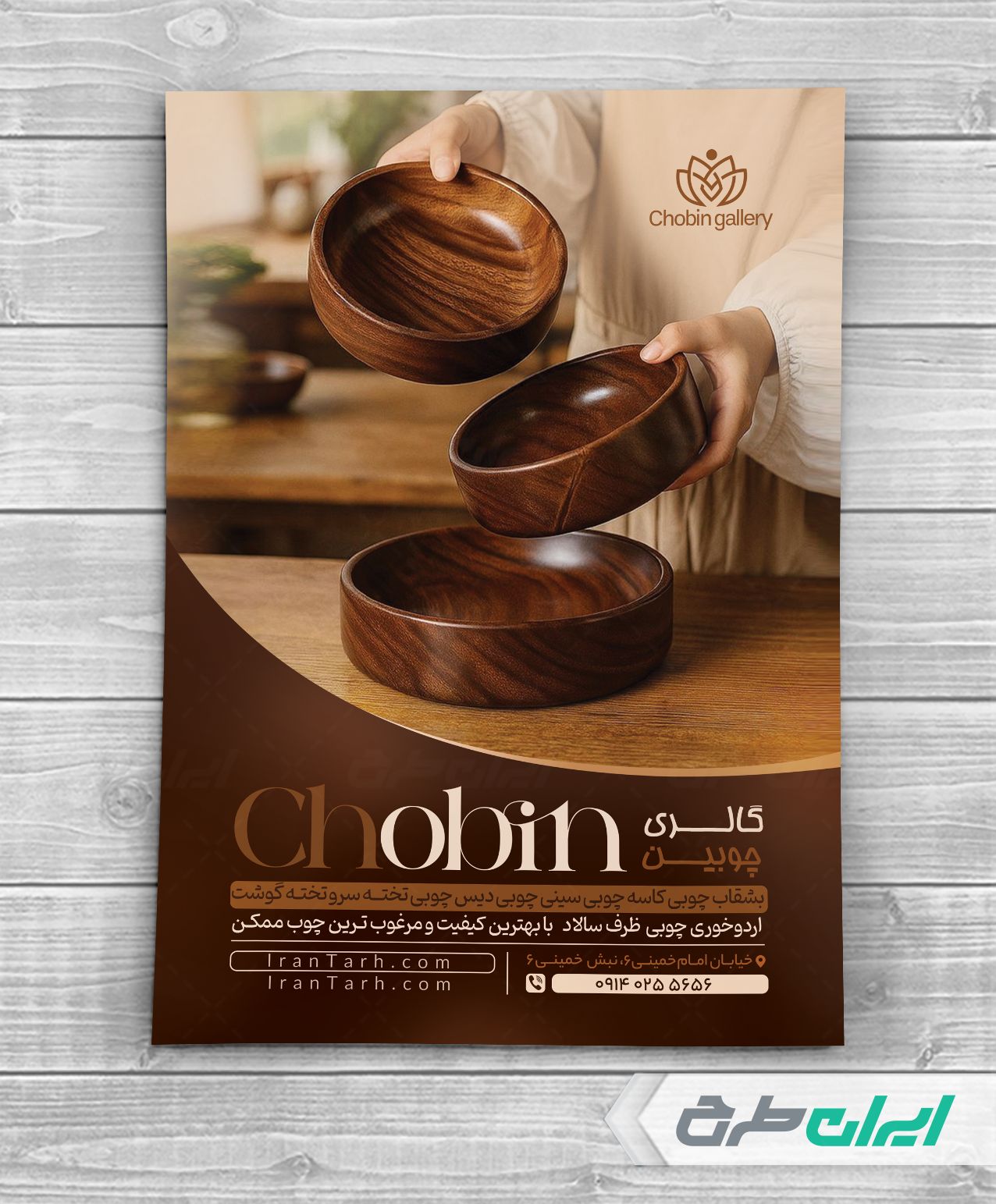 عناصر طرح تراکت فروشگاه ظروف و صنایع چوبی