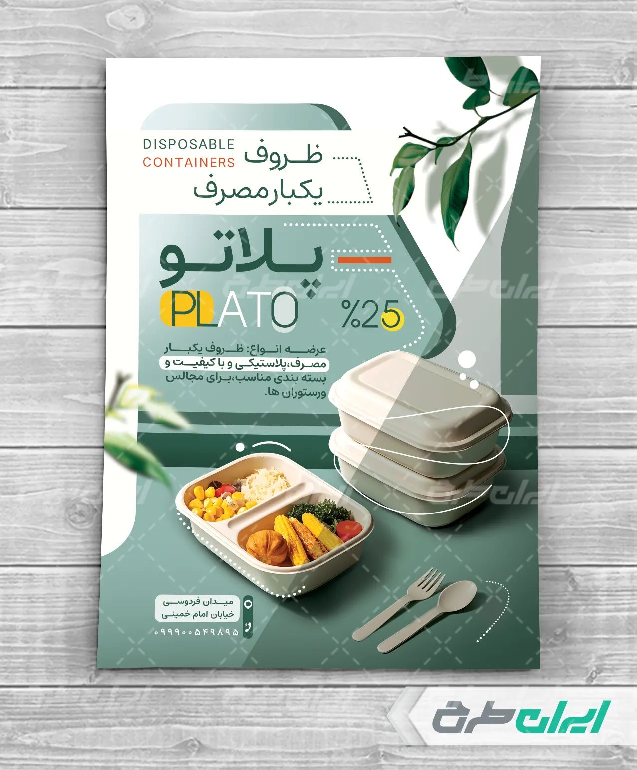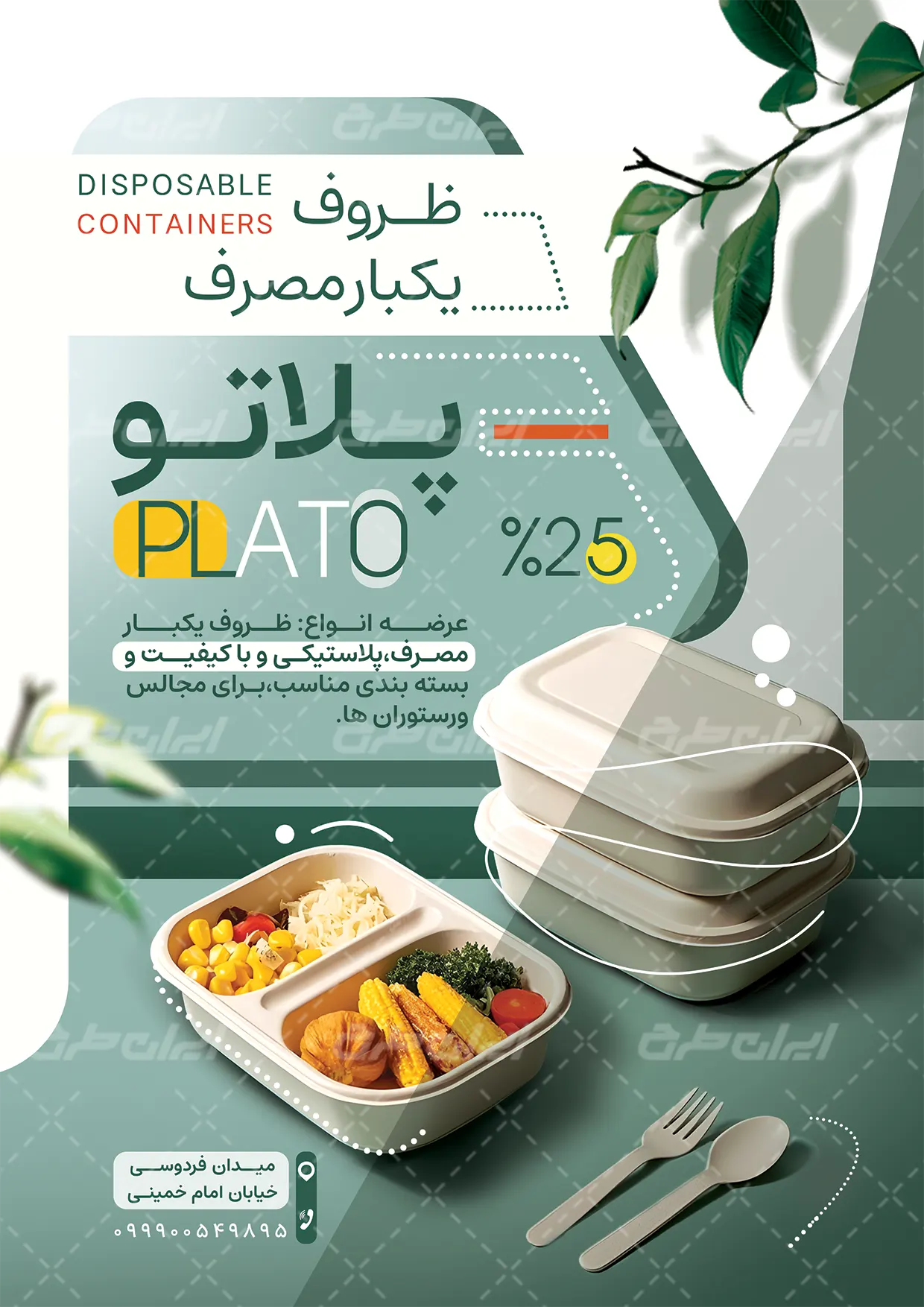 طرح تراکت فروشگاه ظروف یکبار مصرف شامل: