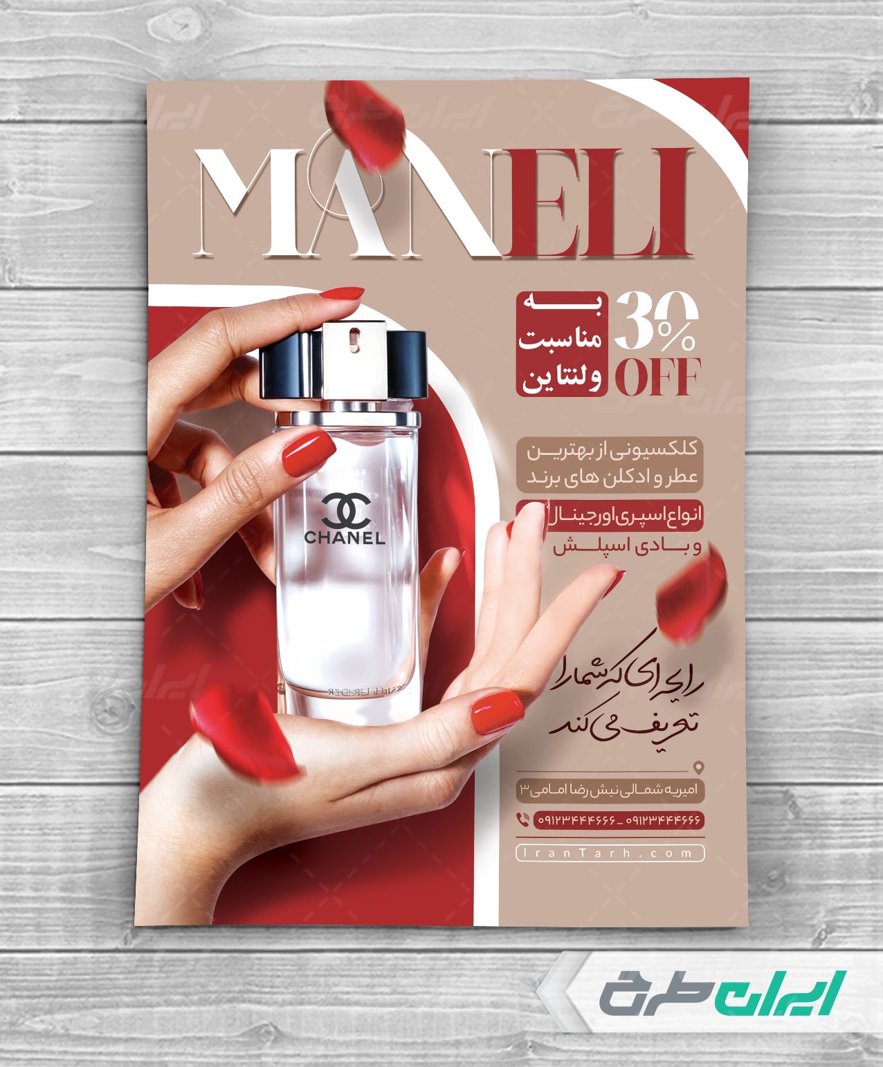 طرح تراکت فروشگاه عطر و ادکلن جهت تبلیغات و بازاریابی این فروشگاه ها توسط تیم ایران طرح طراحی شده است.