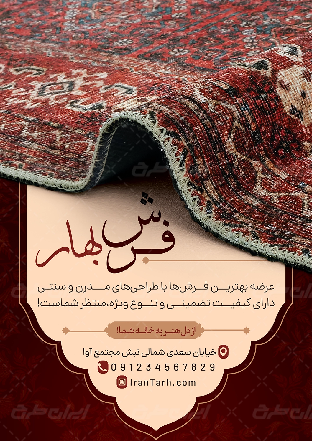 - استفاده مناسب از عکس با کیفیت فرش در طرح تراکت فروشگاه فرش و موکت