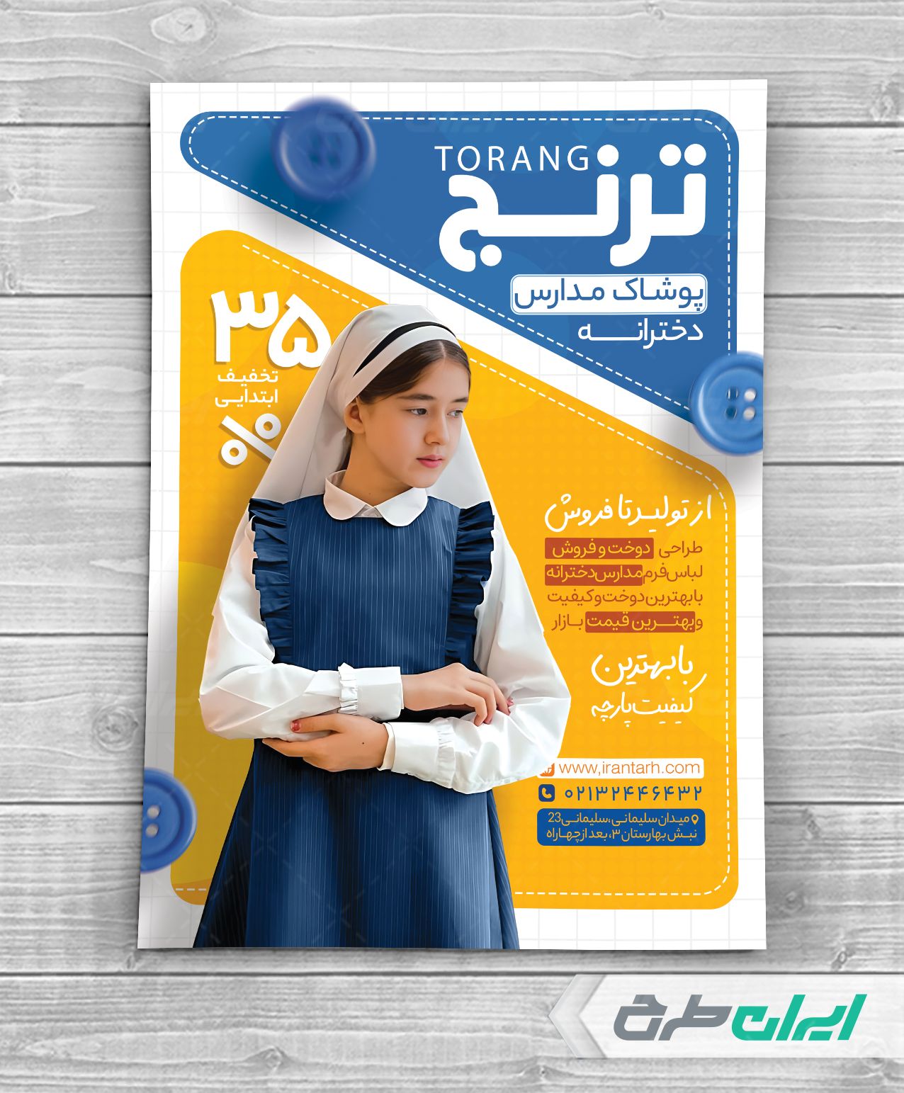 تیم ایران طرح طرح تراکت فروشگاه پوشاک مدارس را برای بازاریابی و تبلیغات گسترده تر این شغل طراحی و در دسترس کاربران سایت قرار داده است.